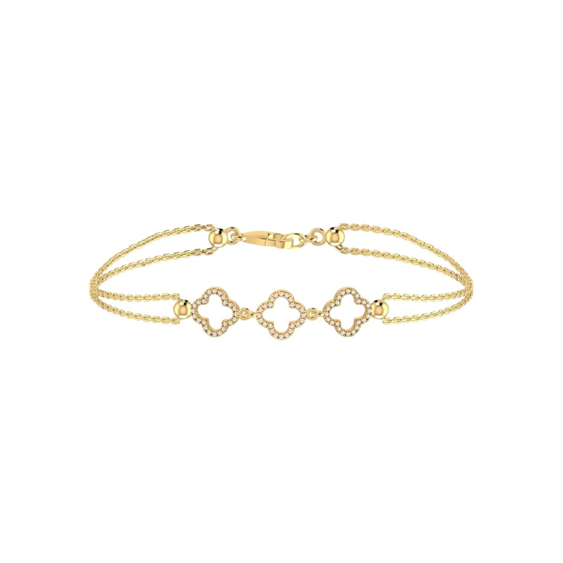 3 Clover Outline Diamond Bracelet in 18KT Gold