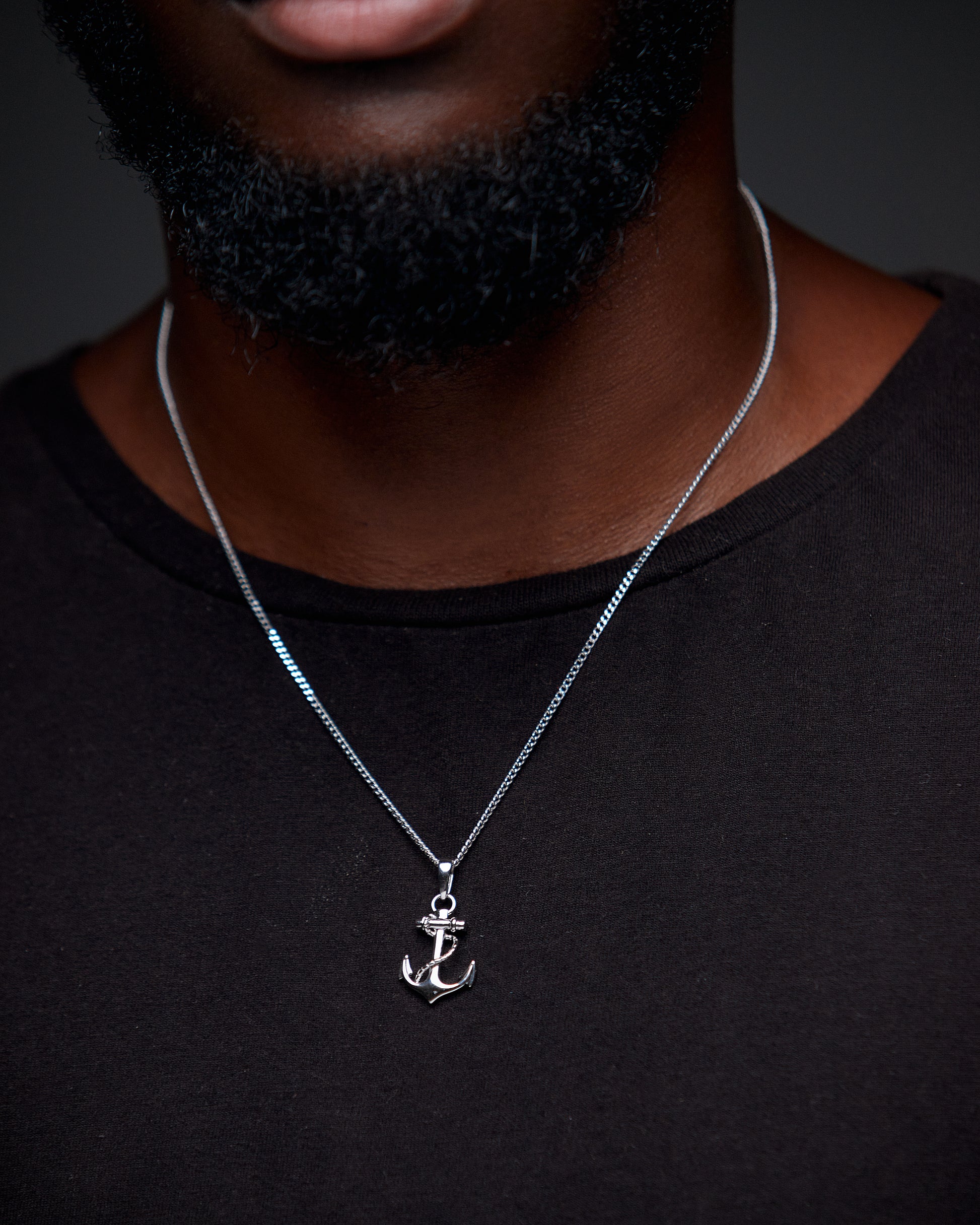 Its sleek, polished finish and smooth contours create a refined silhouette that’s perfect for everyday wear or as a standout statement piece. Whether worn solo or paired with other chains, it’s a bold reminder to stay grounded no matter where life takes you.
