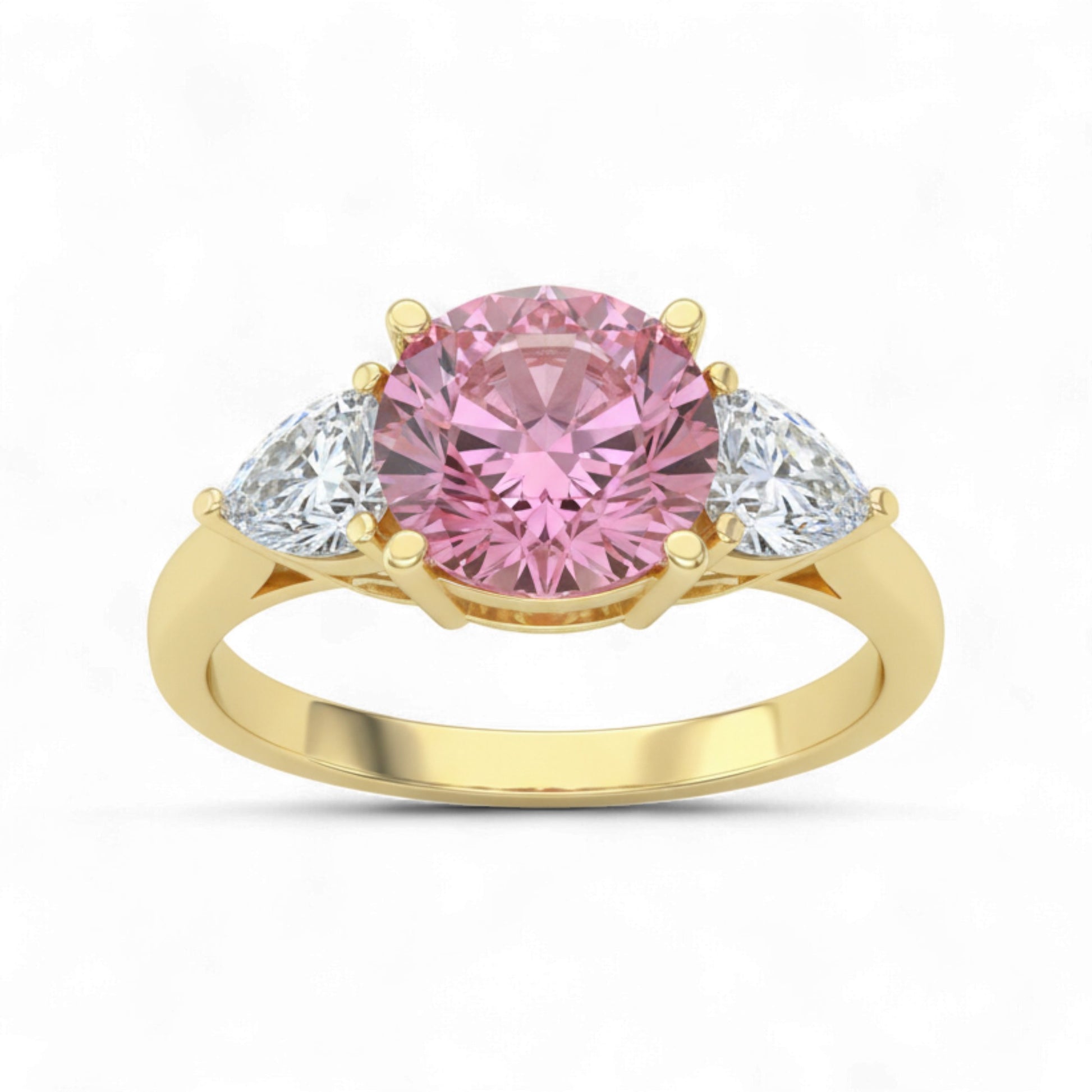 Trinity Pink Moissanite Engagement in 18KT Gold