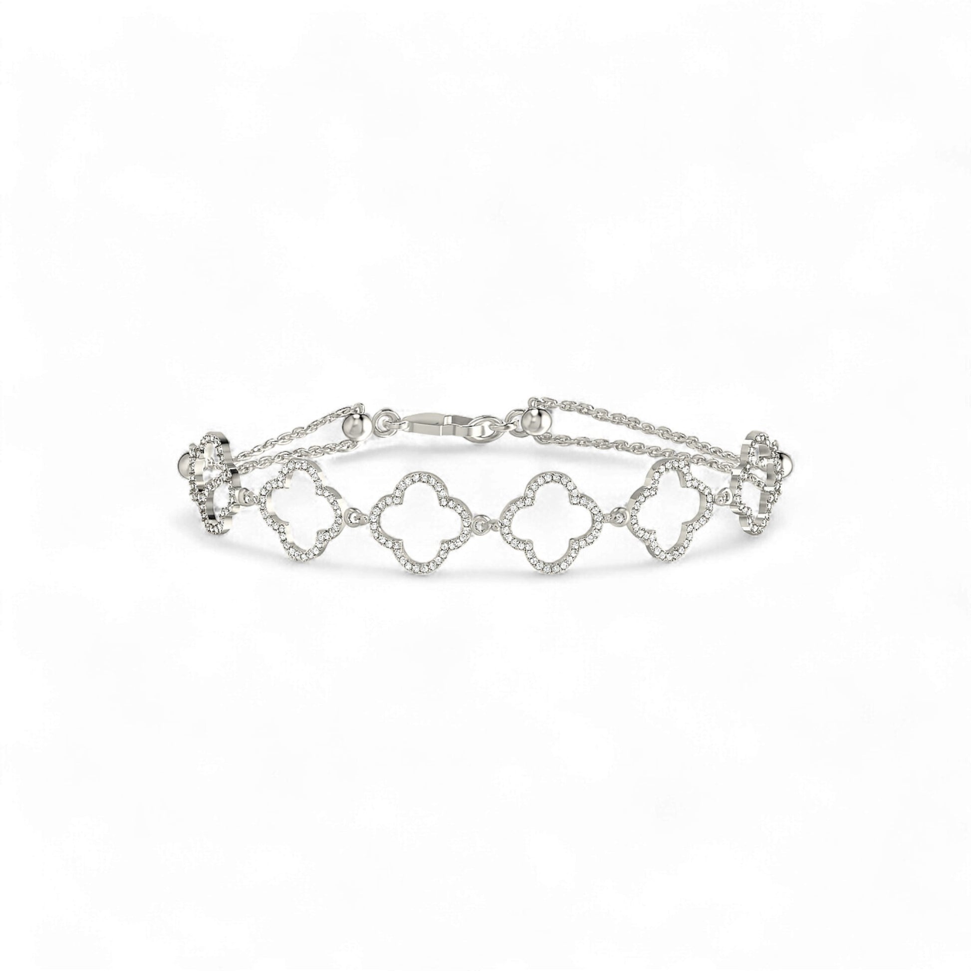 6 Clover Outline Diamond Bracelet in 18K Gold