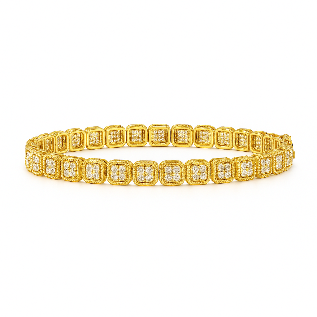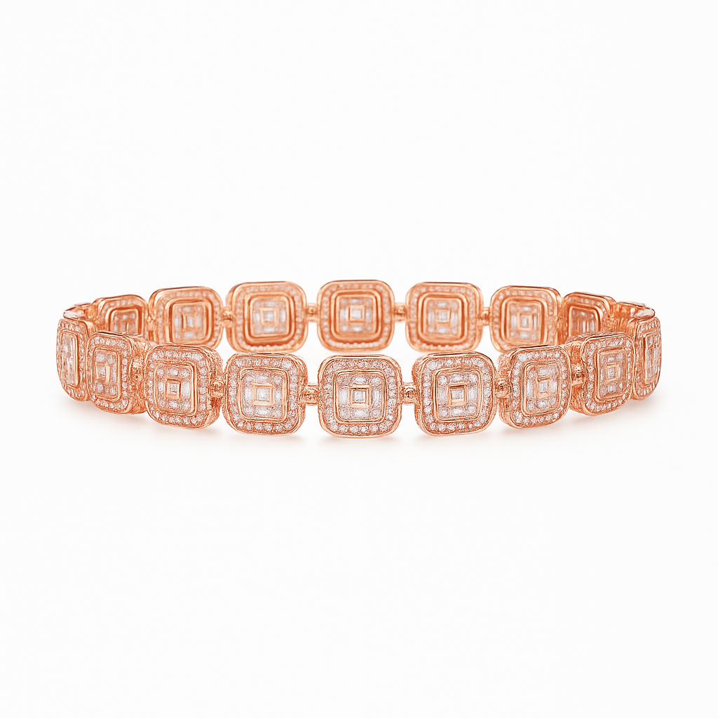 Modern and luxurious, the Baguette Diamond Tennis Bracelet in 18K Gold redefines timeless elegance with a contemporary twist. Featuring a continuous row of hand-selected baguette-cut natural diamonds, this bracelet showcases clean lines and radiant symmetry, offering a bold yet refined statement of brilliance.