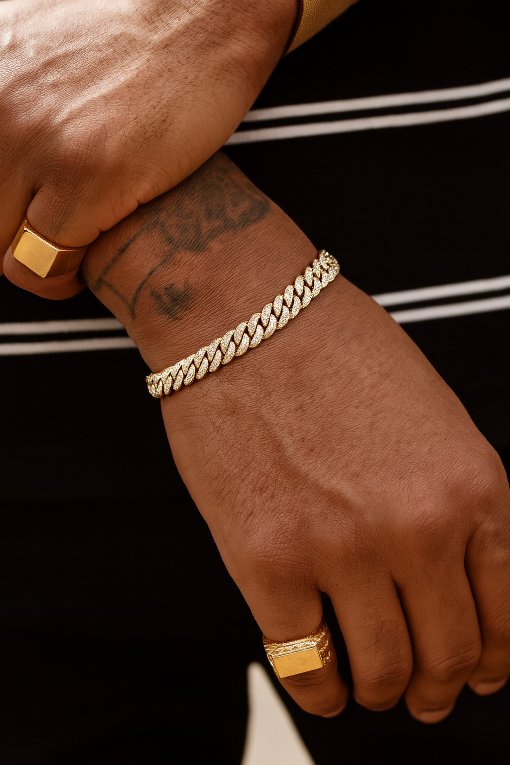 Designed for those who command attention, this piece delivers weight, sparkle, and status in perfect harmony. Ideal for stacking or standing alone as a statement piece, it's the ultimate symbol of refined confidence.