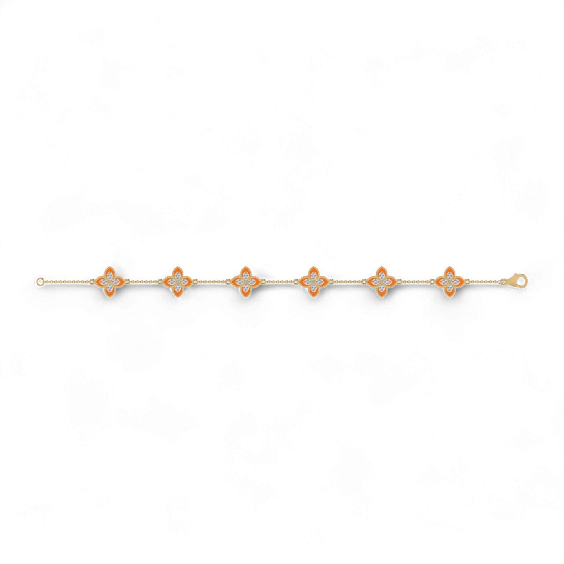 Delicate yet meaningful, the 6 Clover Dual Diamond Bracelet in 18K Gold brings together elegance and symbolism in a graceful design. Featuring six intricately crafted flora motifs, each accented with sparkling natural diamonds, this bracelet is a timeless expression of luck, love, and light.
