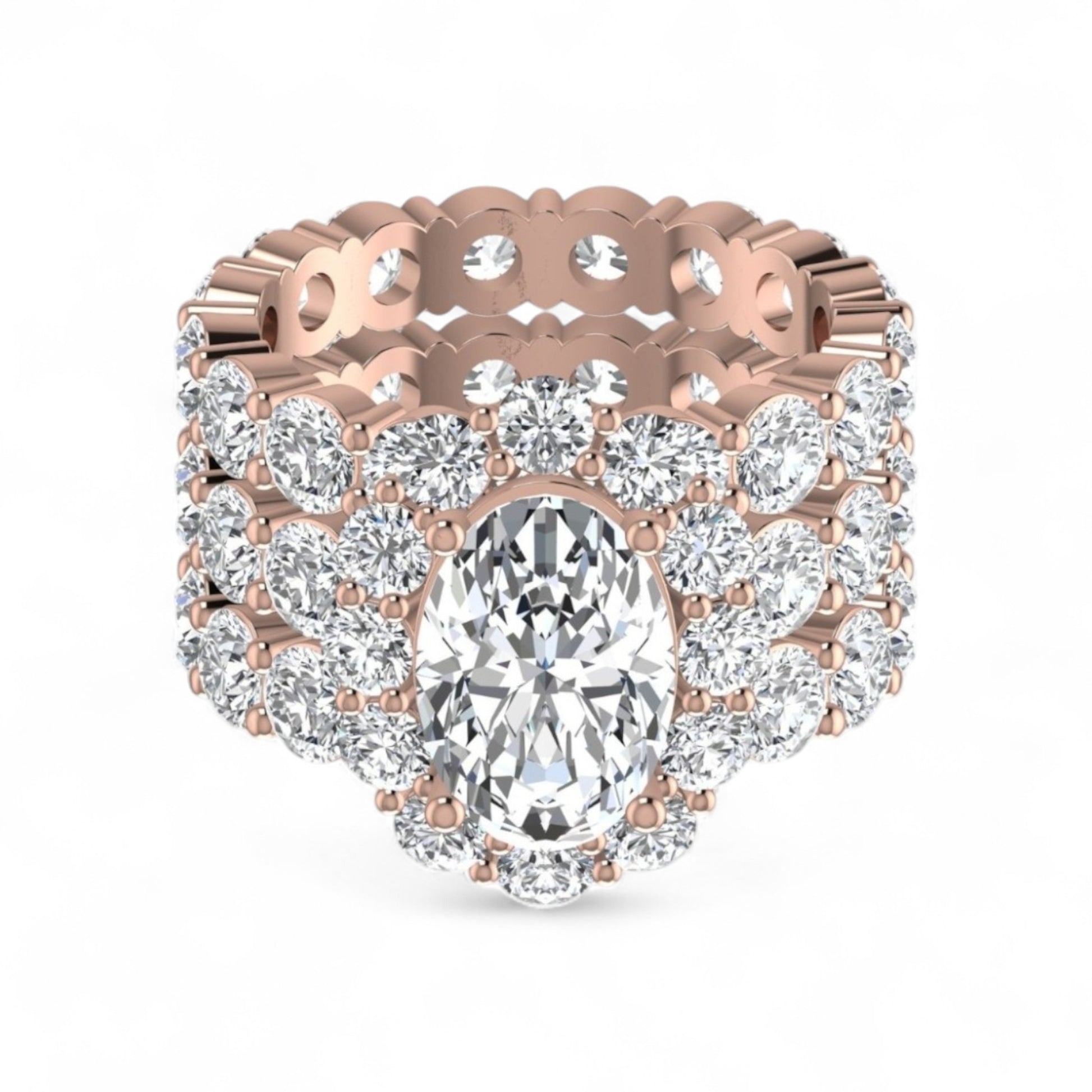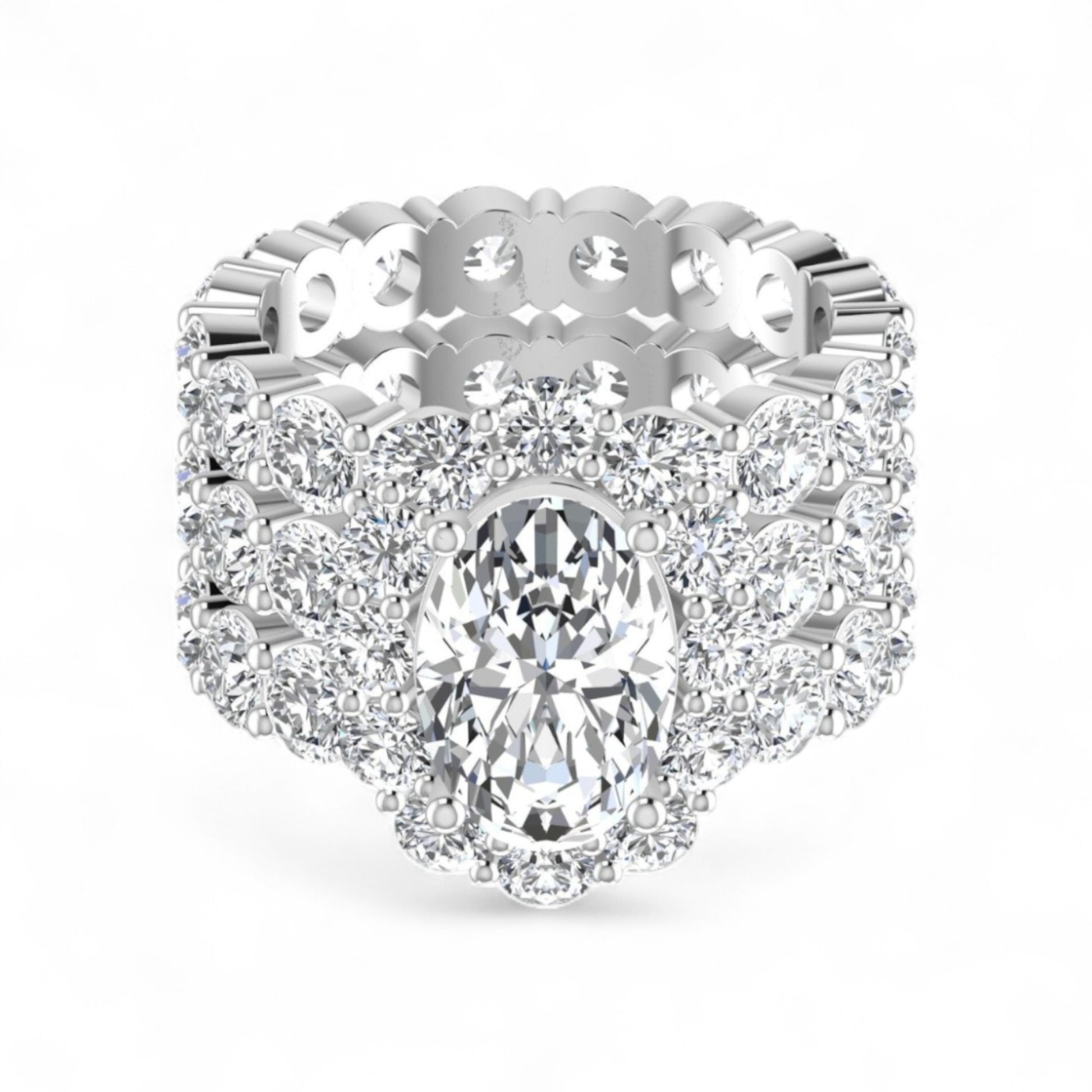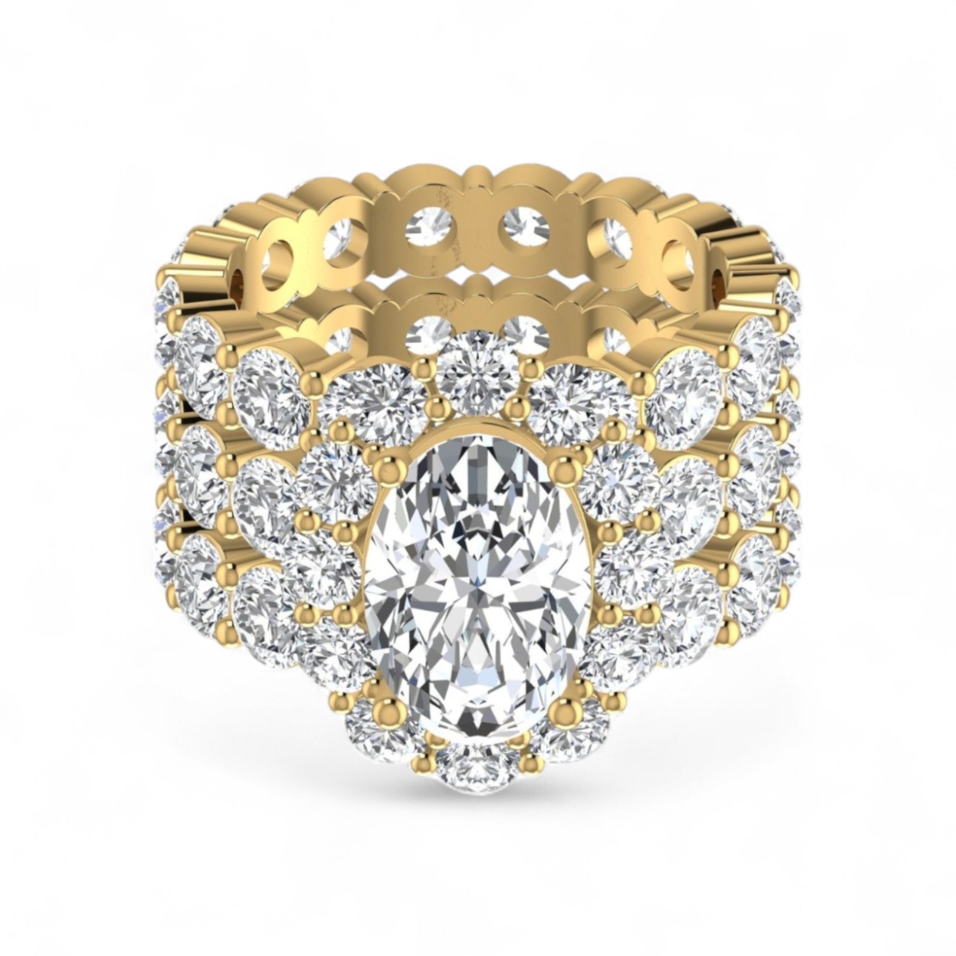 Crafted in luminous 18K gold, this bridal set is more than jewelry, it is a declaration of eternal love. The oval cut represents continuity and passion, while the multi-row diamond design symbolizes eternity, strength, and an unbreakable bond.