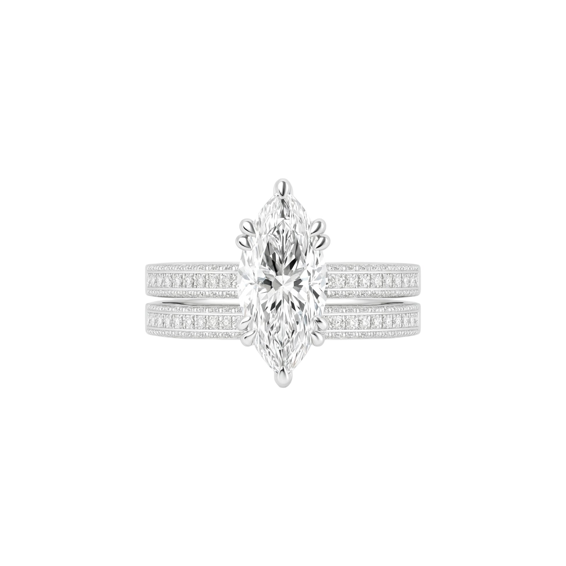 A love story captured in gold and light, the Julia Marquise Lab Grown Diamond Bridal Set is designed for the bride who treasures elegance with a touch of the extraordinary. At its heart glows a marquise-cut lab grown diamond, celebrated for its graceful, elongated shape and luminous brilliance, a stone that catches the eye and holds it.