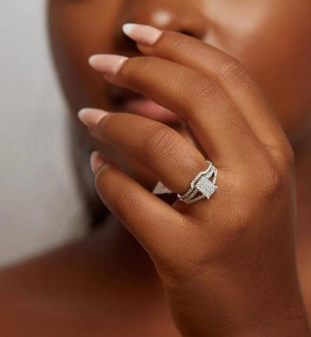 Precious Radiant Cut Natural Diamond Cluster Bride Set in 18K Gold