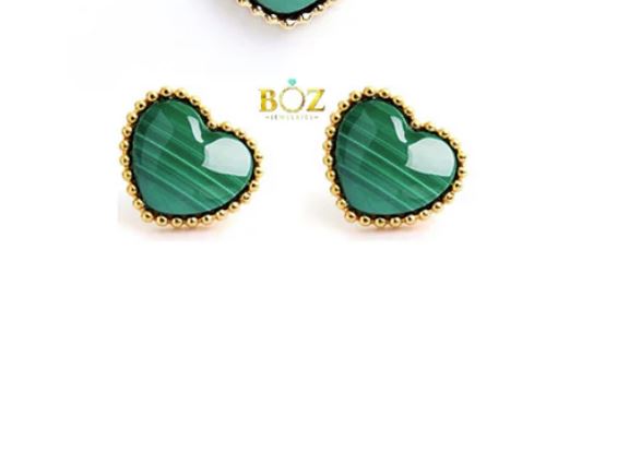 Celebrate love with a vibrant twist in the Amor Heart Malachite Studs in 18K Gold. Crafted from luxurious 18K solid gold, these charming studs feature heart-shaped malachite stones—each one unique with natural green striations that symbolize growth, harmony, and renewal.