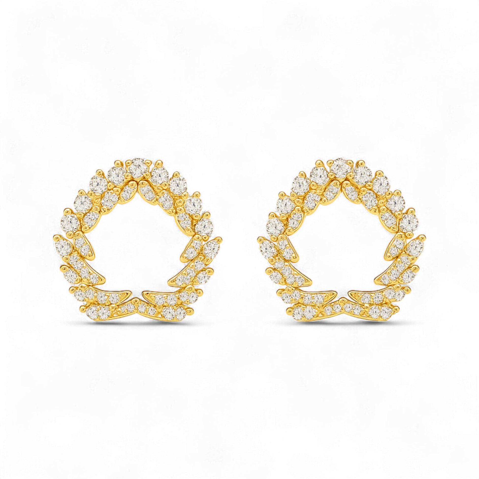 The BOZ Forever Single Motif Diamond Studs are a striking representation of unity, strength, and enduring love, crafted in luminous 18K gold and encrusted with precision-set natural diamonds. Inspired by a laurel crown, each stud curves into a powerful circular motif, reflecting triumph, wholeness, and elegance that never fades.