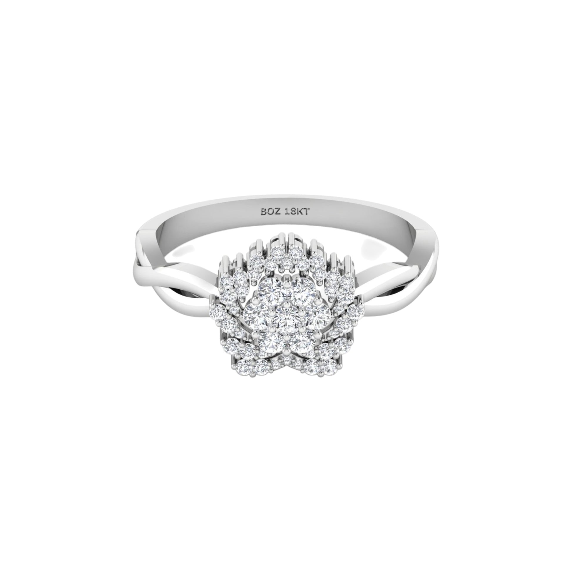 Eternal beauty meets modern elegance in the BOZ Forever Moissanite Engagement I8 Karat Ring. Crafted in luxurious 18K gold, this design features a brilliant cluster of moissanite stones, carefully arranged to create the illusion of a larger, radiant centerpiece. The delicate twist of the band adds a touch of artistry, while the halo-like sparkle of accent stones ensures brilliance from every angle.