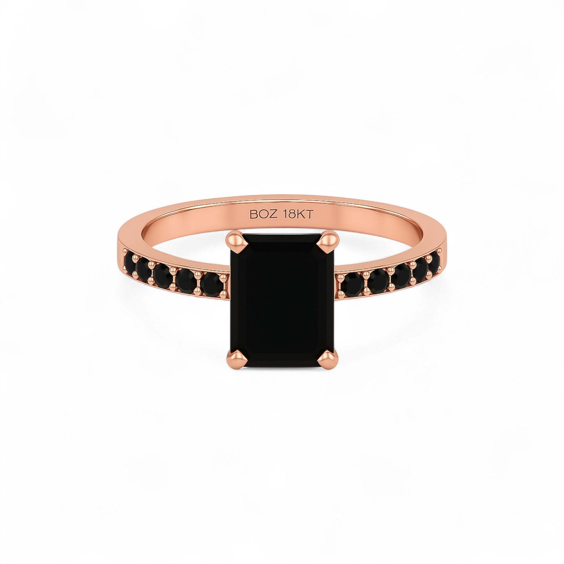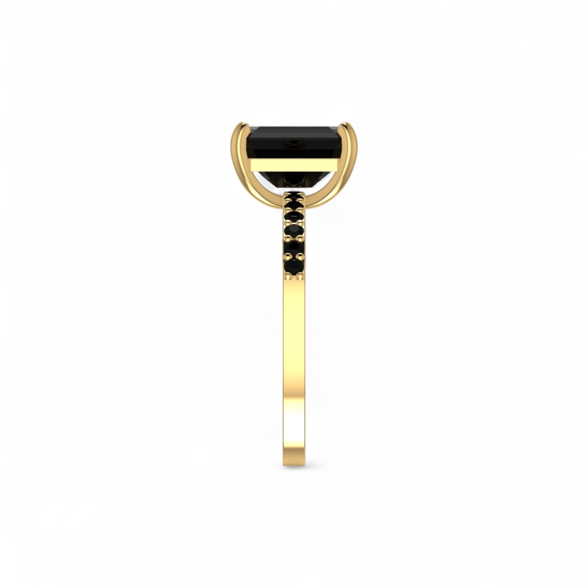 No Halo Black Emerald cut Moissanite Engagement Ring in 18K Gold