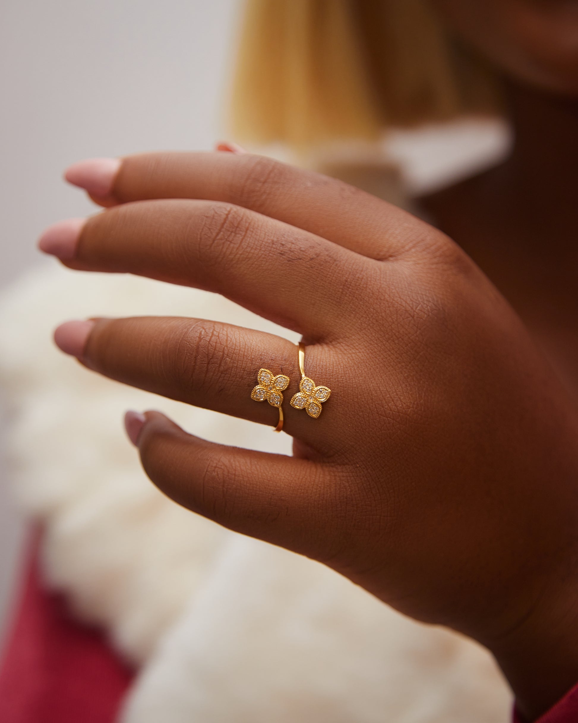 The Nora ring is more than a statement piece, it is a reflection of love, individuality, and timeless beauty. The floral motifs symbolize growth and new beginnings, while the golden embrace captures warmth and devotion. Perfect for stacking or wearing as a standout piece, this ring celebrates elegance in its purest form.