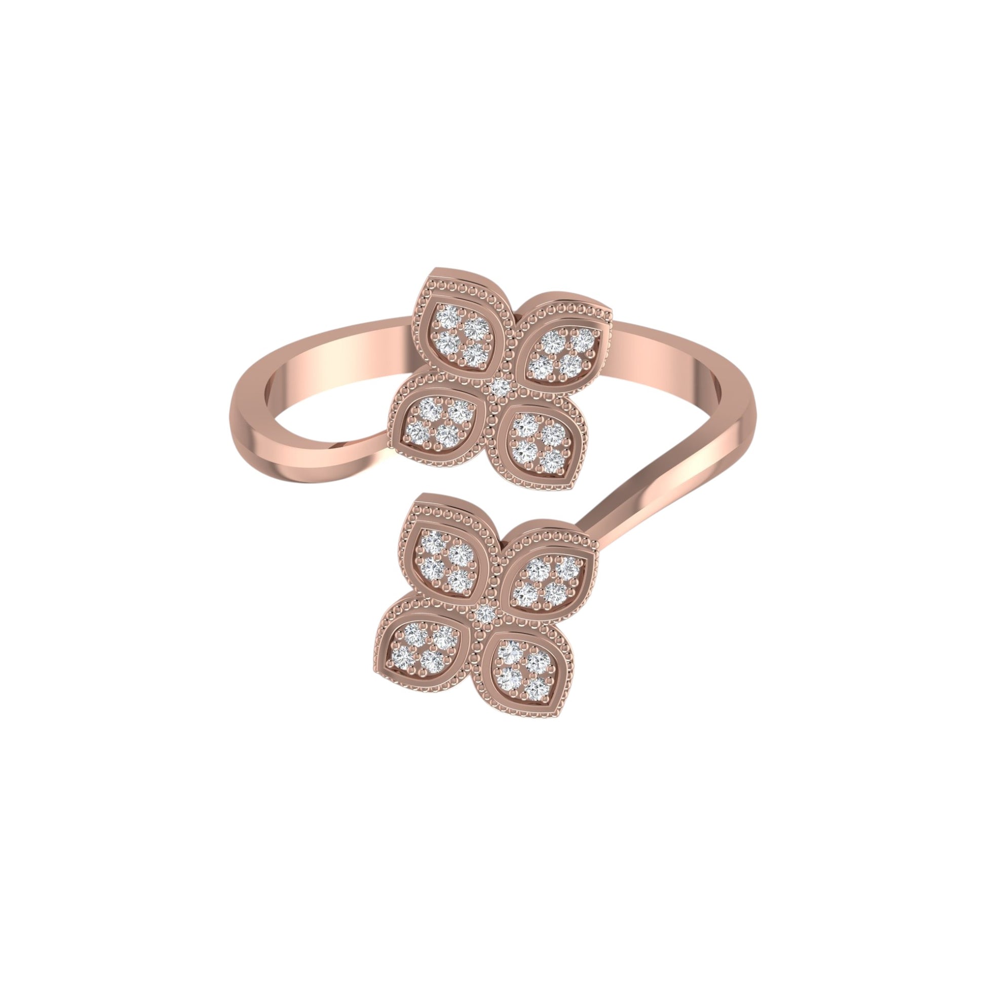Chic, radiant, and endlessly elegant, the Nora Cuff Diamond Ring is designed to stand out with effortless sophistication. Crafted in luminous 18 Karat gold, this artistic design features two floral-inspired diamond clusters, each petal outlined with fine milgrain detailing for a touch of vintage charm. The open cuff silhouette adds a modern twist, making it both versatile and unforgettable.