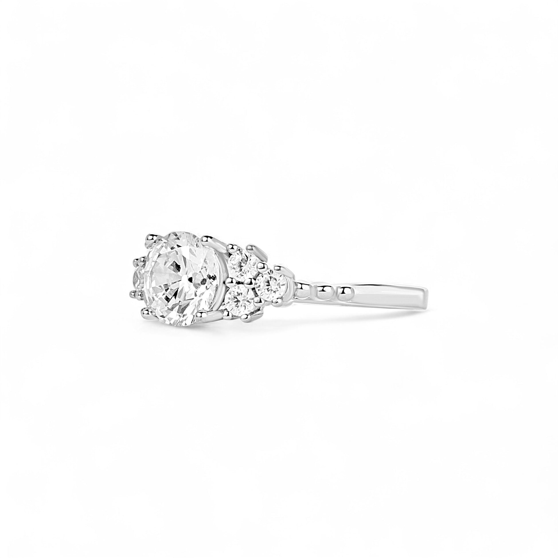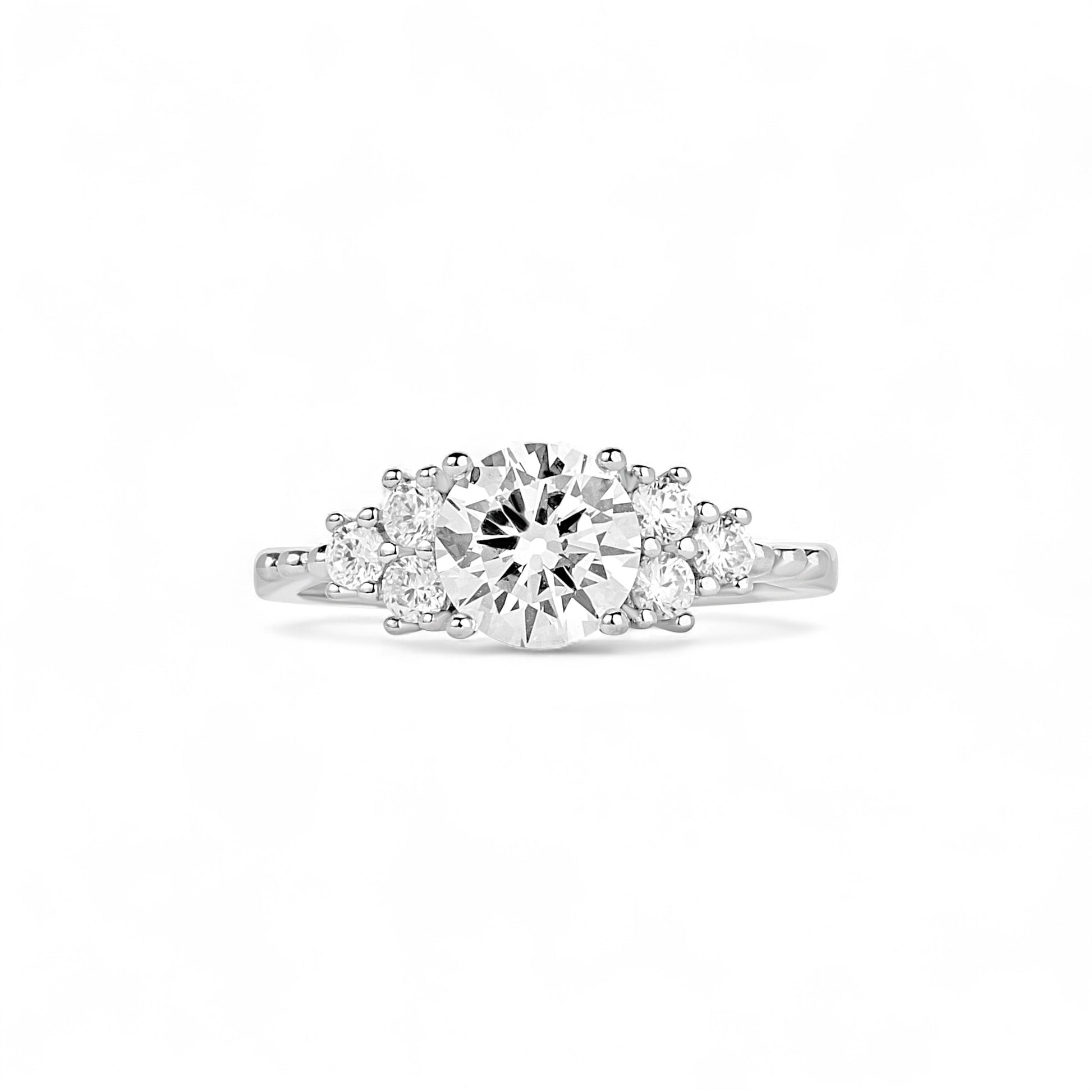 The Tare Cubic Zirconia Engagement Ring in 925 Sterling Silver dazzles with a brilliant round-cut center stone, flanked by clusters of sparkling cubic zirconia for maximum radiance. Crafted from high-quality sterling silver, this timeless design offers elegance, durability, and a luminous finish perfect for marking life’s most special moments.
