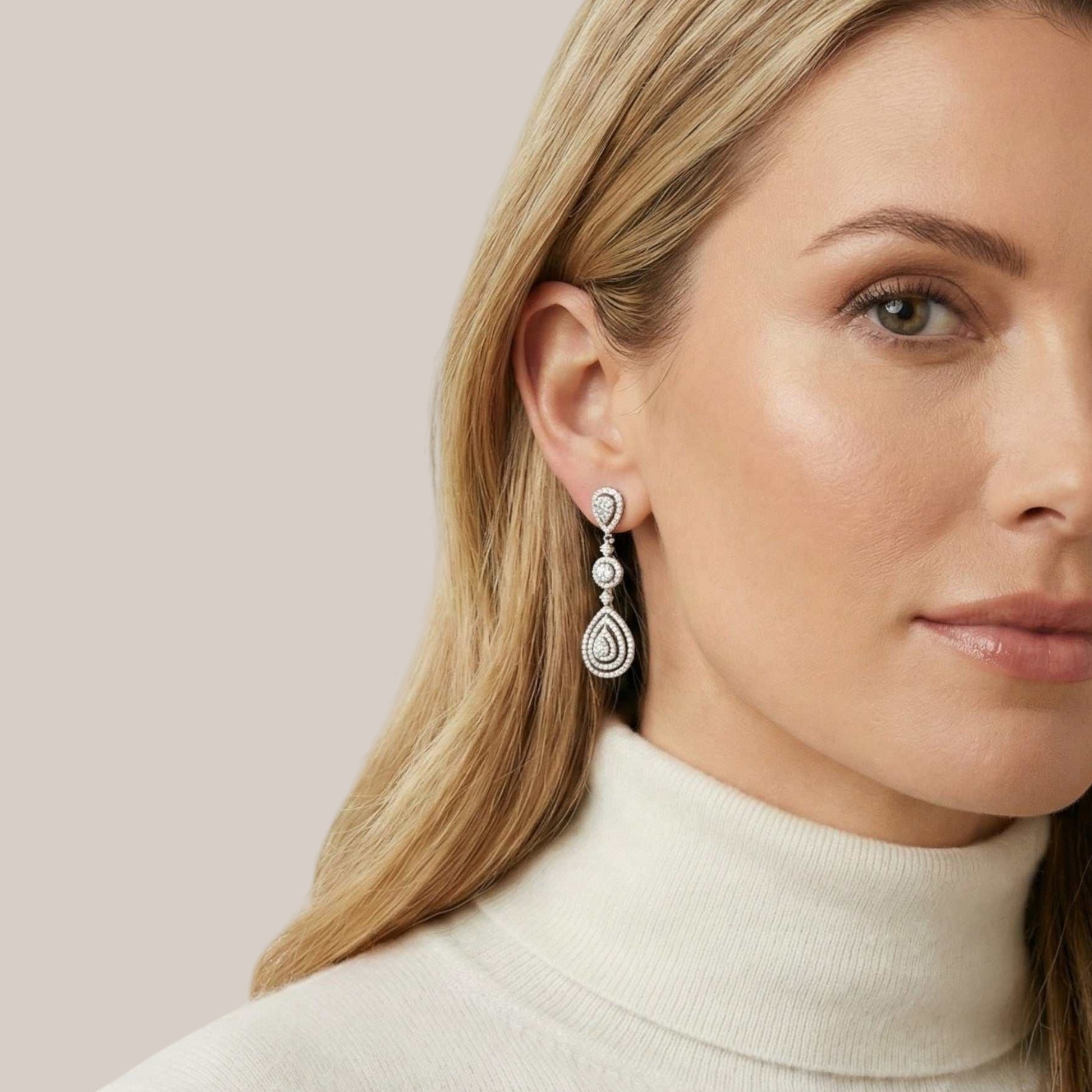 A stunning choice for those searching for “tear drop diamond dangle earrings” that deliver both statement sparkle and heirloom elegance.