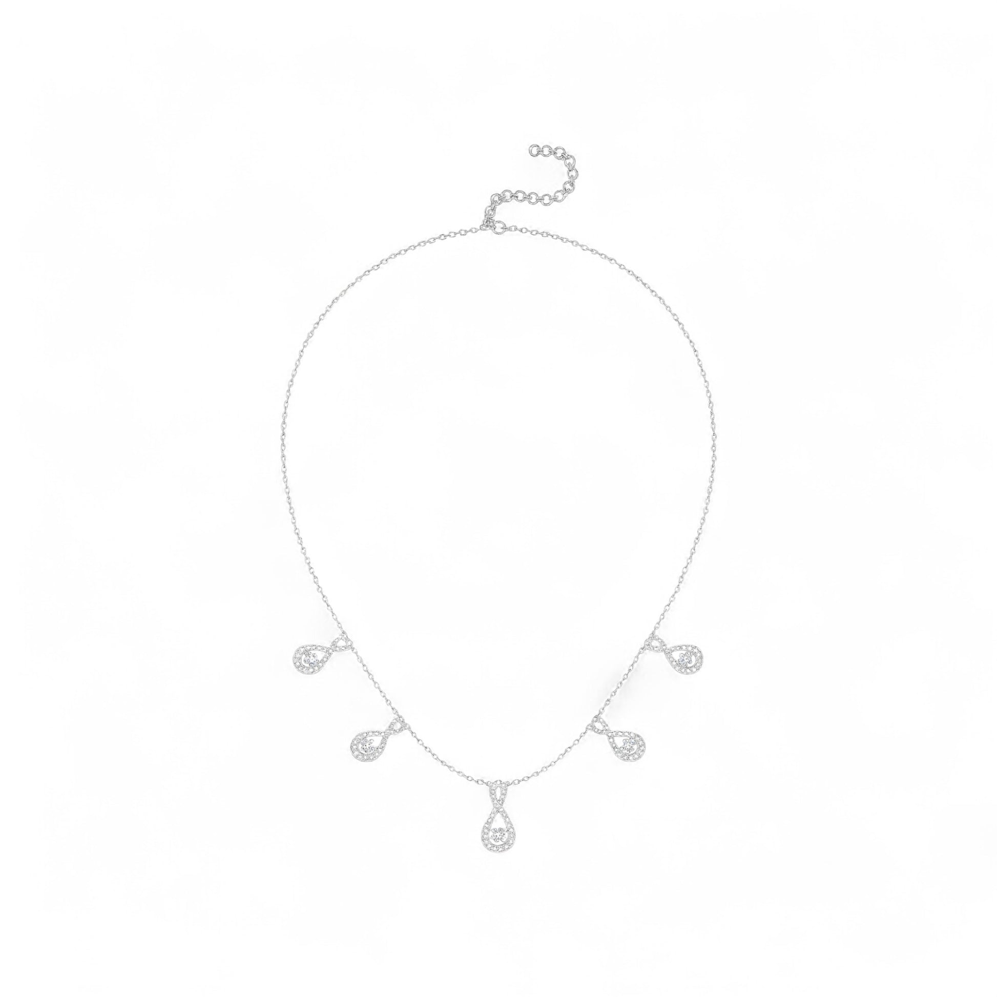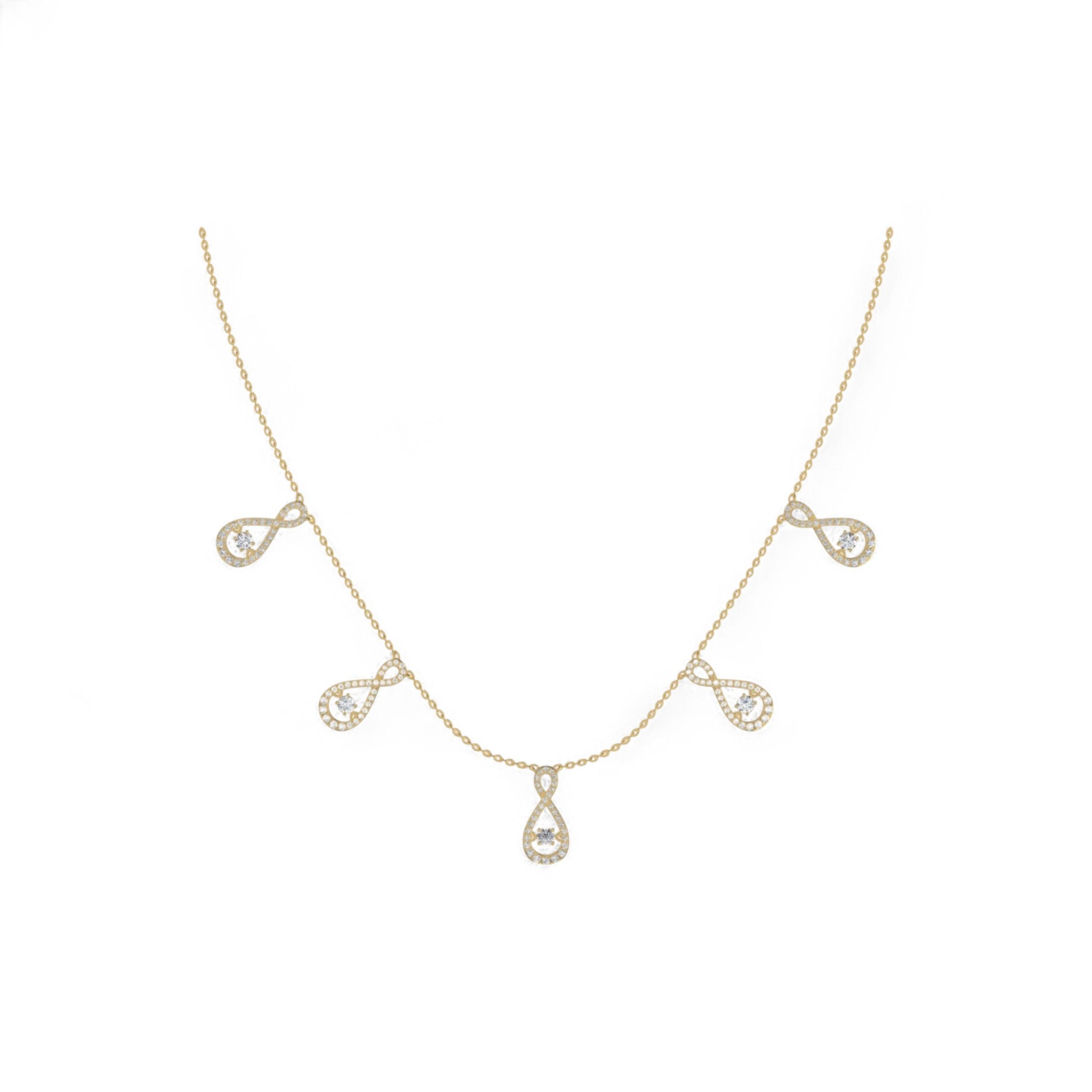 Discover the epitome of elegance with our 5-Charm Twinkle Infinite Diamond Necklace. Designed to captivate, this luxurious piece features five delicately crafted diamond infinity symbol charms that shimmer with every movement, symbolizing infinite beauty and timeless love. Perfectly balanced between modern minimalism and opulent sophistication, it’s an unforgettable statement for any occasion. Let this necklace be the ultimate expression of your style and grace.