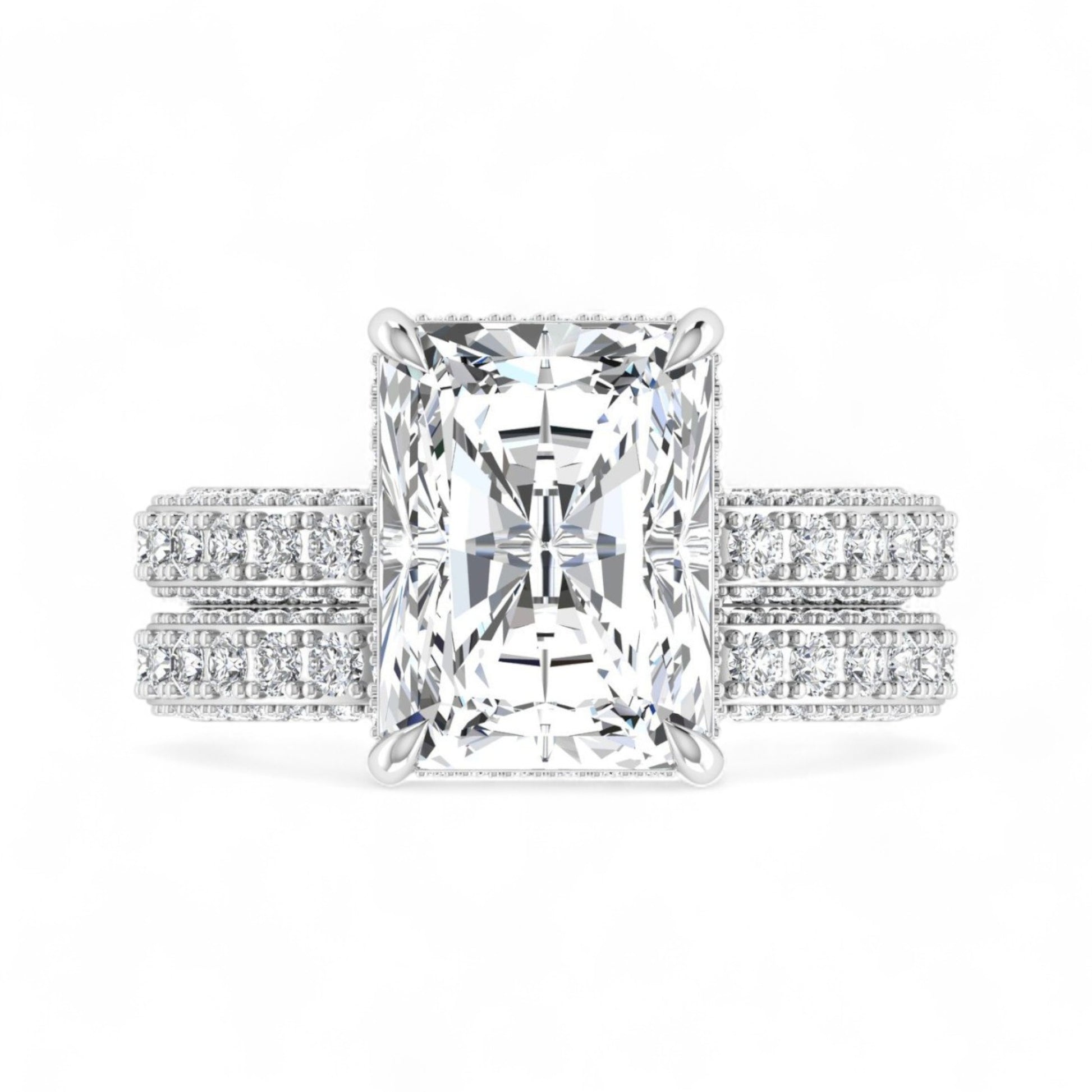 Home Collections Diamond Rings Amina Radiant Cut Lab Grown Diamond Bride Set in 18K Gold