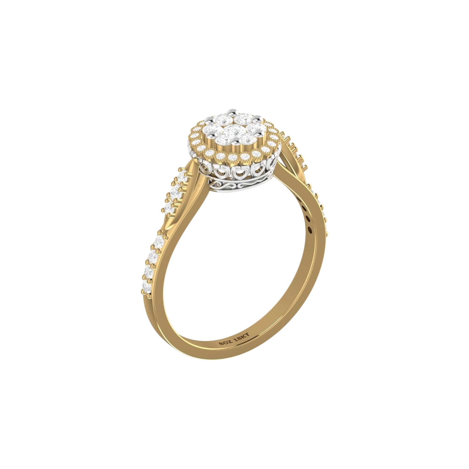 Delicate, radiant, and full of timeless charm, the Daisy Natural Diamond Engagement Ring in 18 Karat Gold is a romantic tribute to enduring love. At the center of this captivating design lies a brilliant round-cut natural diamond, surrounded by a halo of smaller diamonds arranged in a floral-inspired cluster that evokes the soft elegance of a blooming daisy.