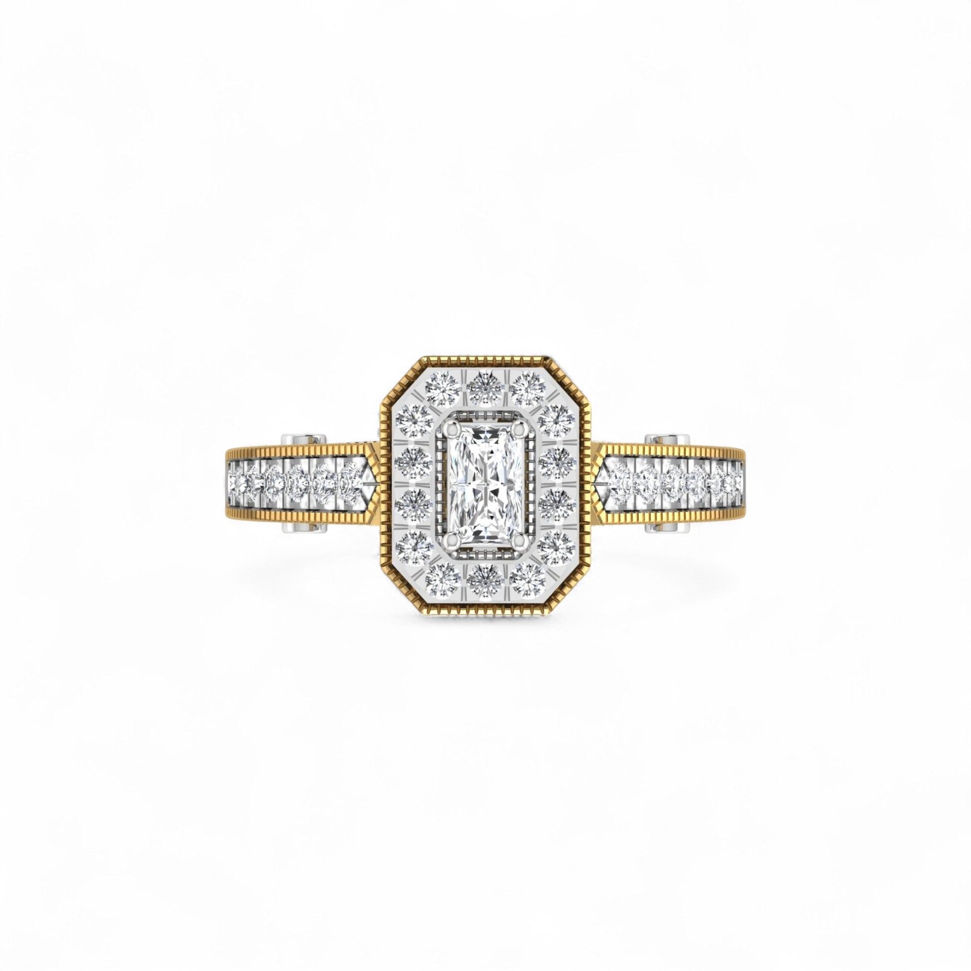 The Nala Radiant Natural Diamond Engagement Ring in 18 Karat Gold is a masterpiece of timeless elegance. Featuring a radiant-cut natural diamond at the center, framed by a bold octagon-shaped halo of brilliant diamonds and a pavé-set band, this design combines striking geometry with refined sparkle. Crafted in polished 18K gold, it’s built to last as beautifully as the love it represents.