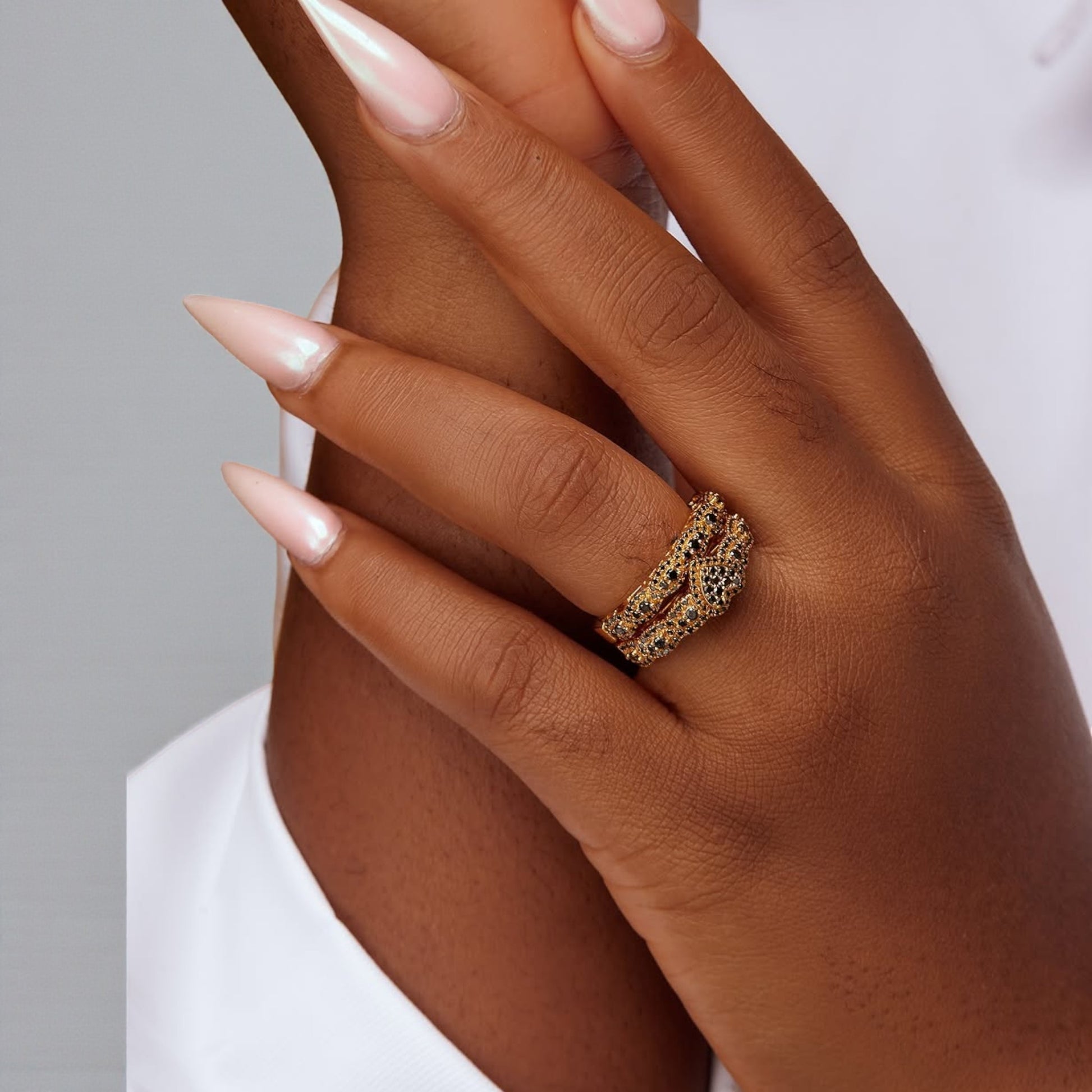 Boldly romantic and beautifully unconventional, the Ruby  Engagement Ring showcases a stunning heart-cut black diamond, a symbol of deep, fearless love. Surrounded by a delicate cluster of shimmering accent stones, the center gem is set in rich 18K gold for a look that is both luxurious and unforgettable. The contoured matching band adds harmony and elegance, completing a set designed for the bride who embraces individuality, strength, and timeless style with a daring twist.