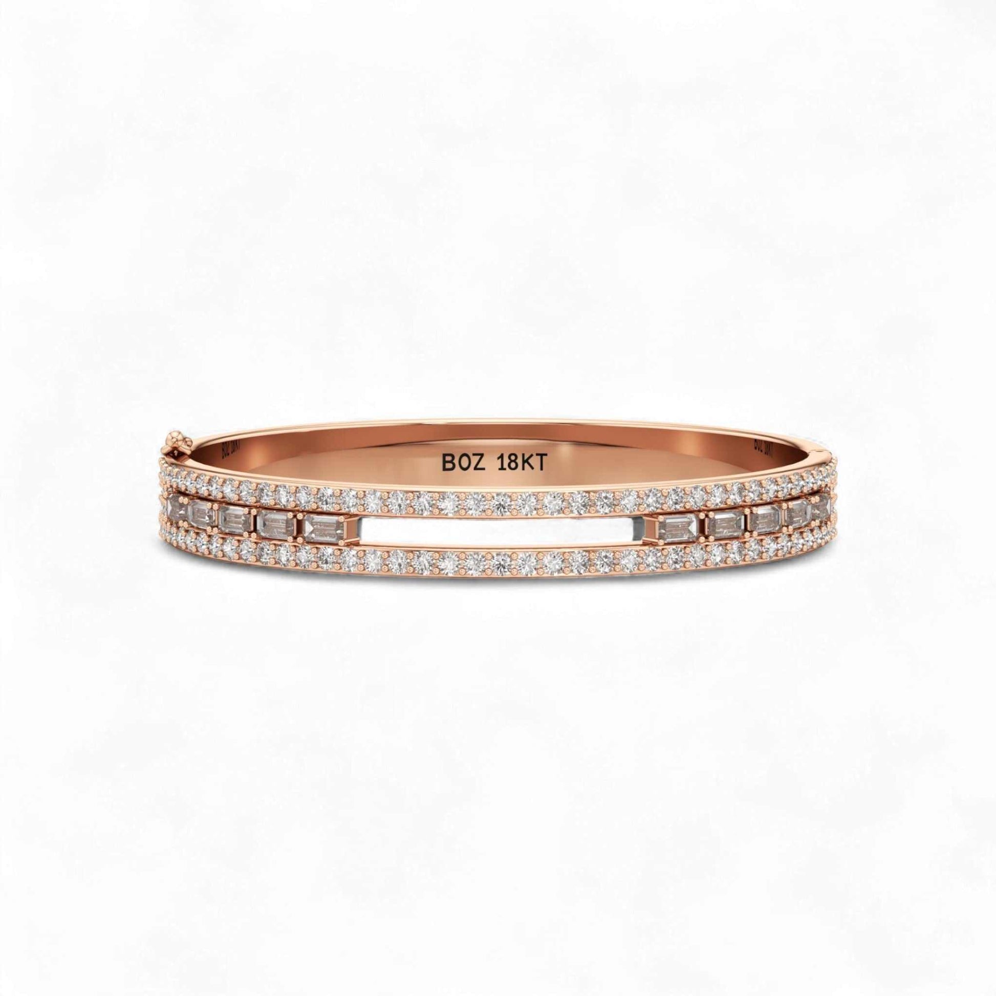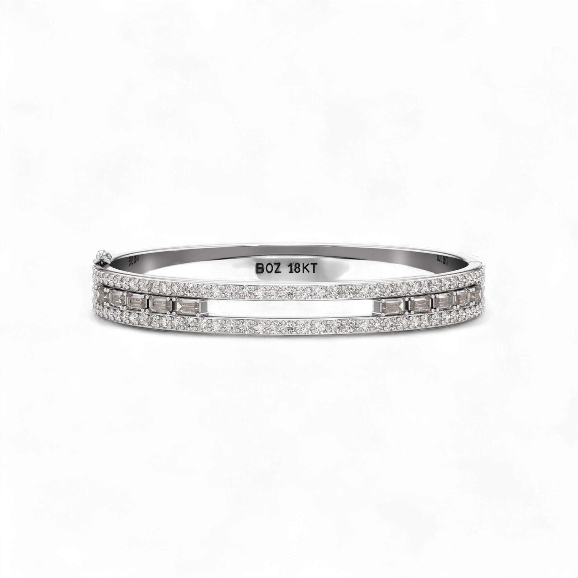 The Aeris Diamond Bracelet captures the delicate balance of movement and radiance. Designed with a sleek double-row structure, it features round-cut diamonds that sparkle endlessly and a center line of baguette diamonds, each small stone crafted to move gracefully with every motion. The result is a bracelet that glimmers with life, reflecting light and love from every angle.