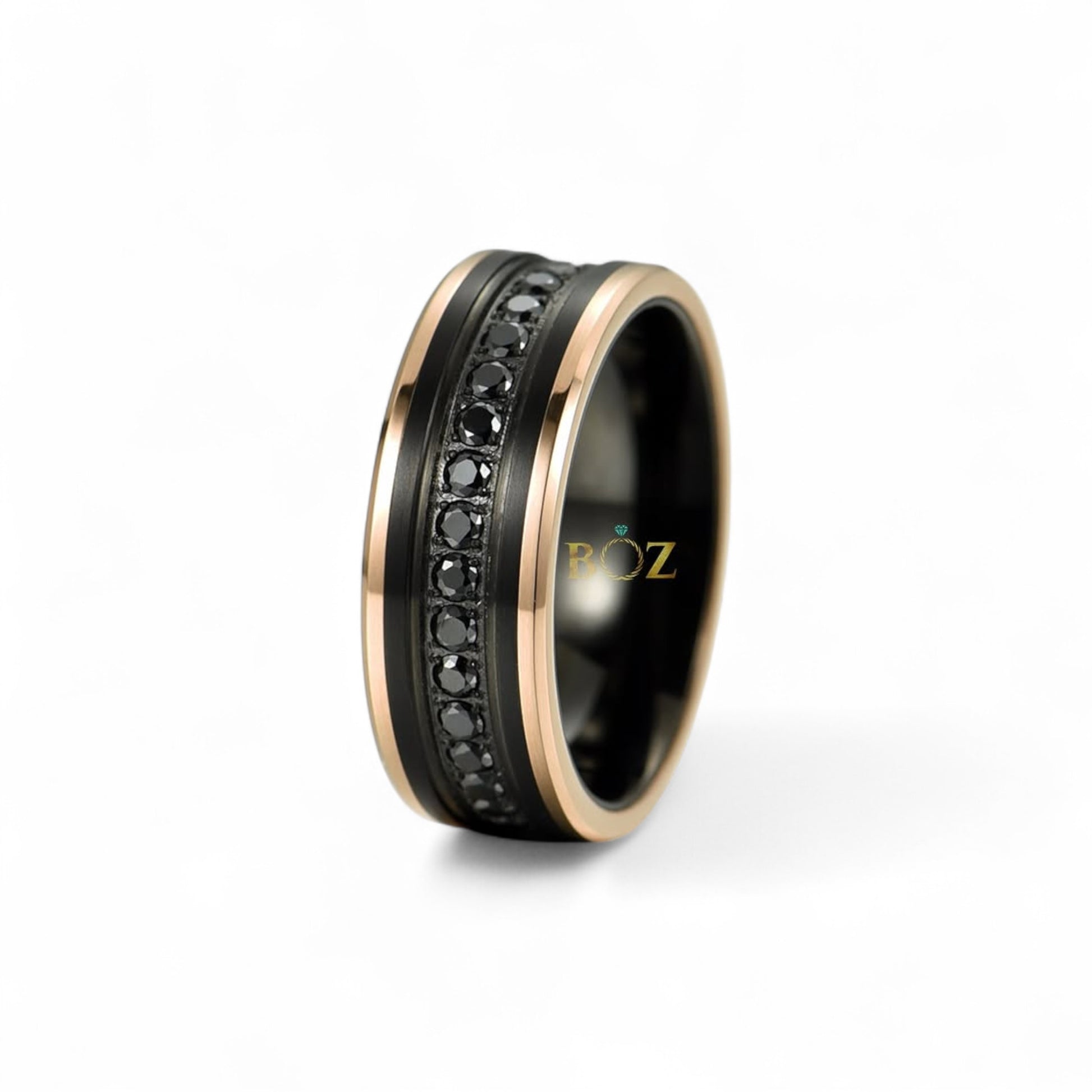 Designed for the modern leader, the Executive Band blends timeless elegance with a contemporary edge, perfect for weddings, milestones, or signature everyday wear. Its comfort-fit interior ensures ease, while the bold black sapphire accents command attention.