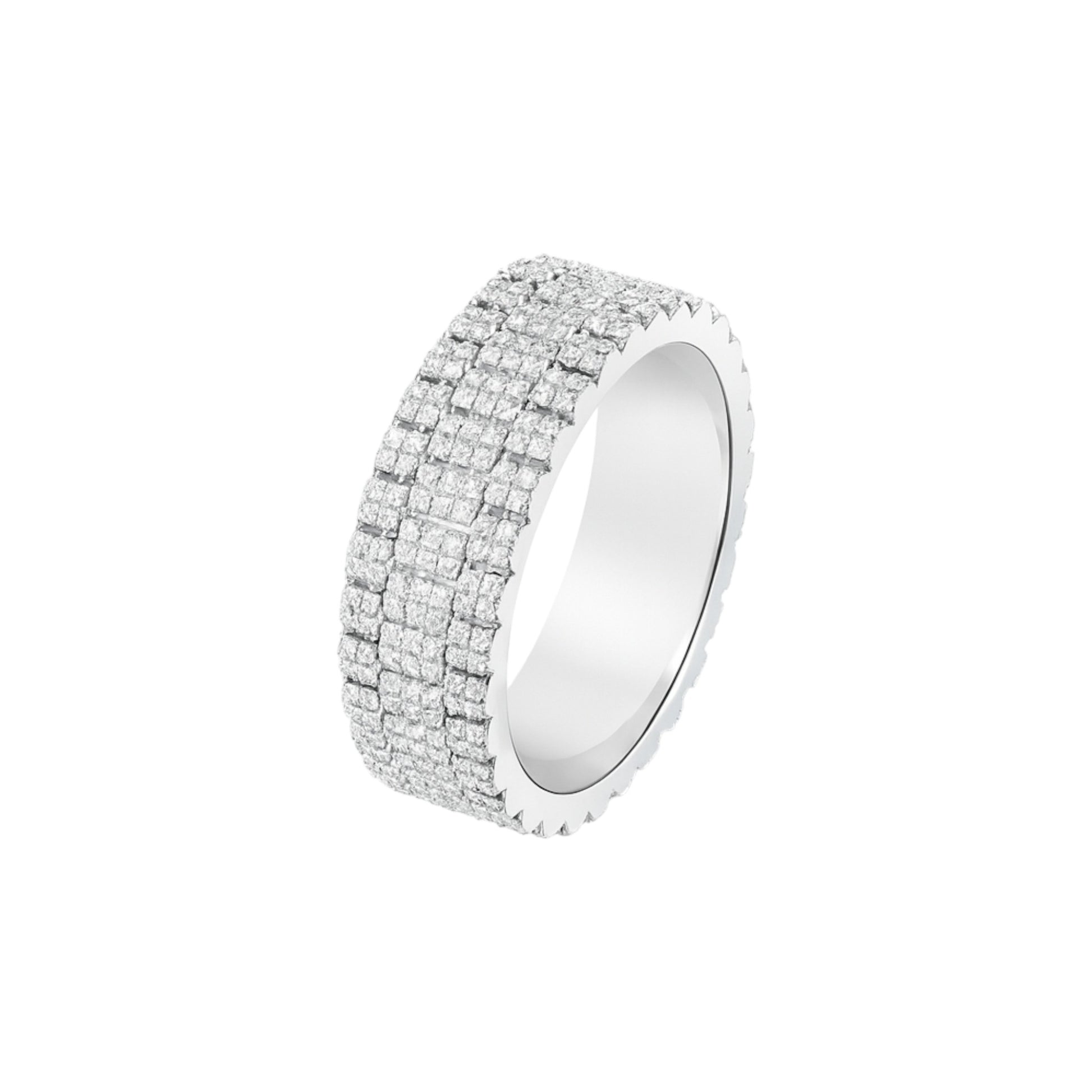 The seamless design and radiant stones embody timeless sophistication and enduring commitment.