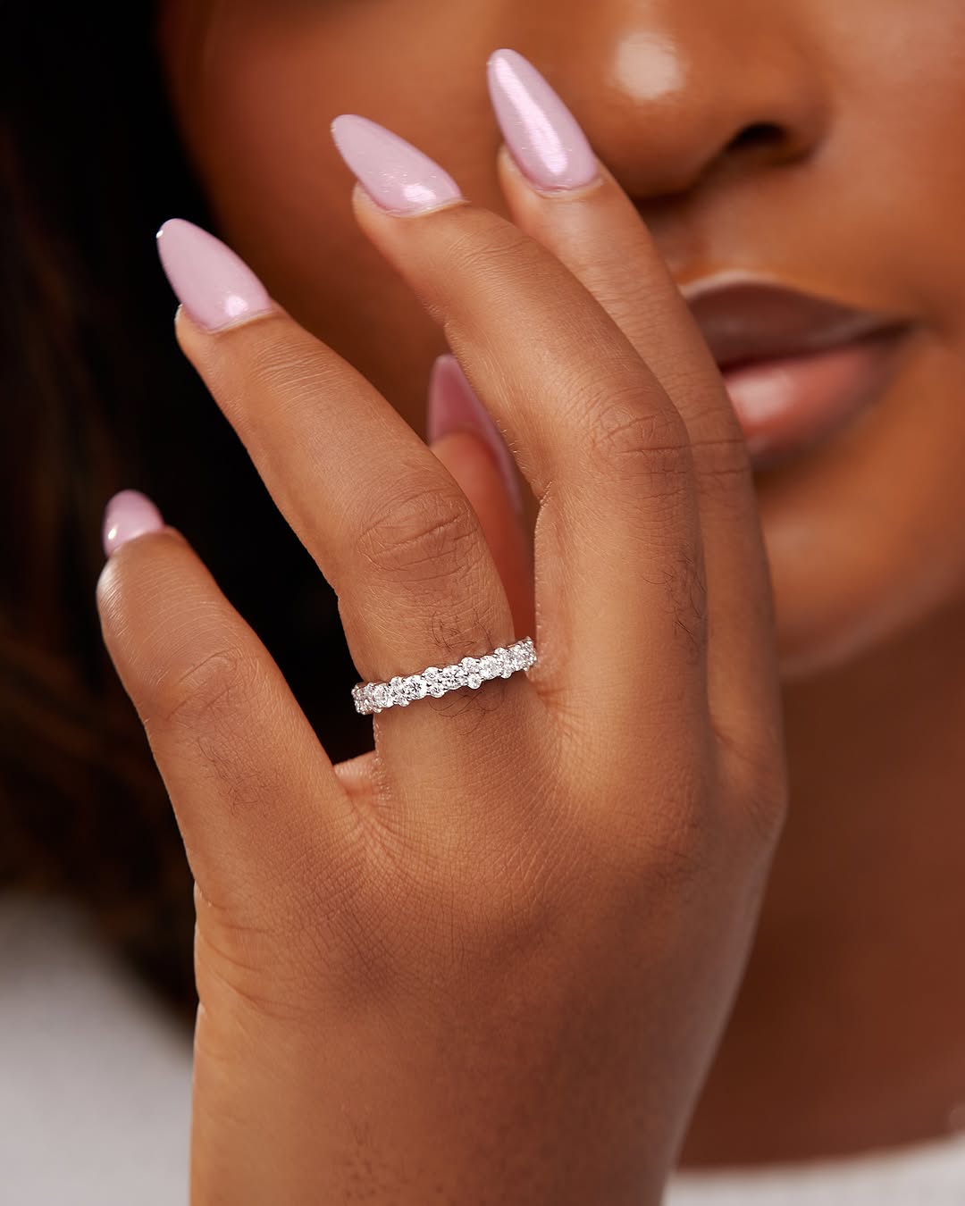 Whether worn as a wedding band, anniversary ring, or a statement piece, the Cluster Eternity Moissanite Band is a radiant symbol of endless love and elevated style.