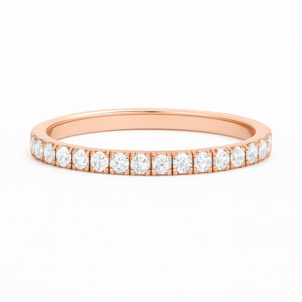 The 2MM Pavé Natural Diamond Band in 18K Gold exudes timeless elegance with a continuous row of hand-set natural diamonds that sparkle with every movement. Its slim, refined design is perfect for stacking, pairing with an engagement ring, or wearing solo as a graceful expression of love and commitment.