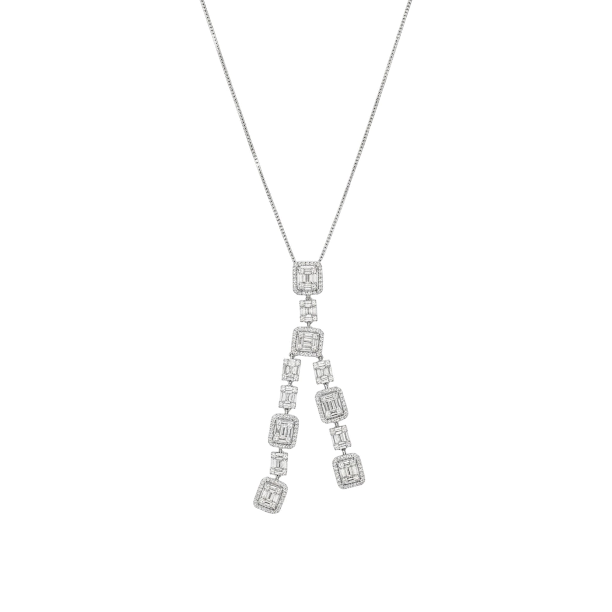 6 Round and Baguette Natural Diamond Necklace in 18KT Gold