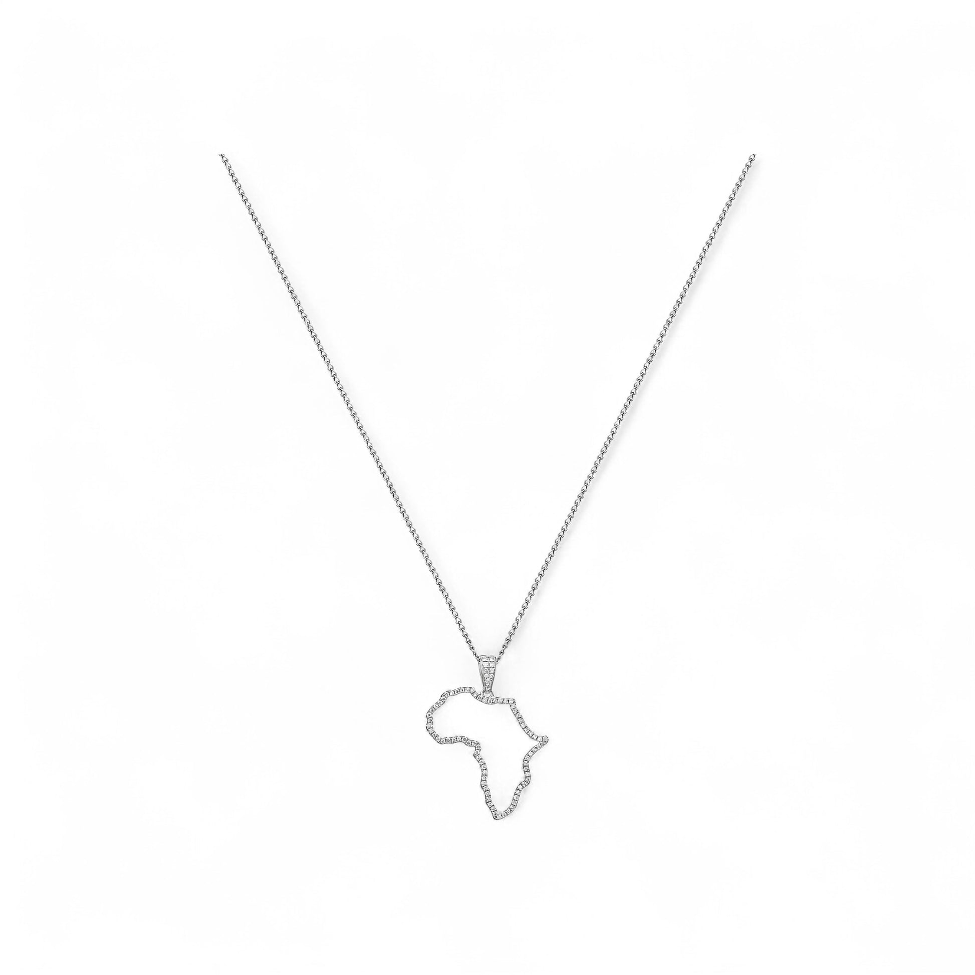 African Map Outline Diamond Pendant Necklace in 18K Gold