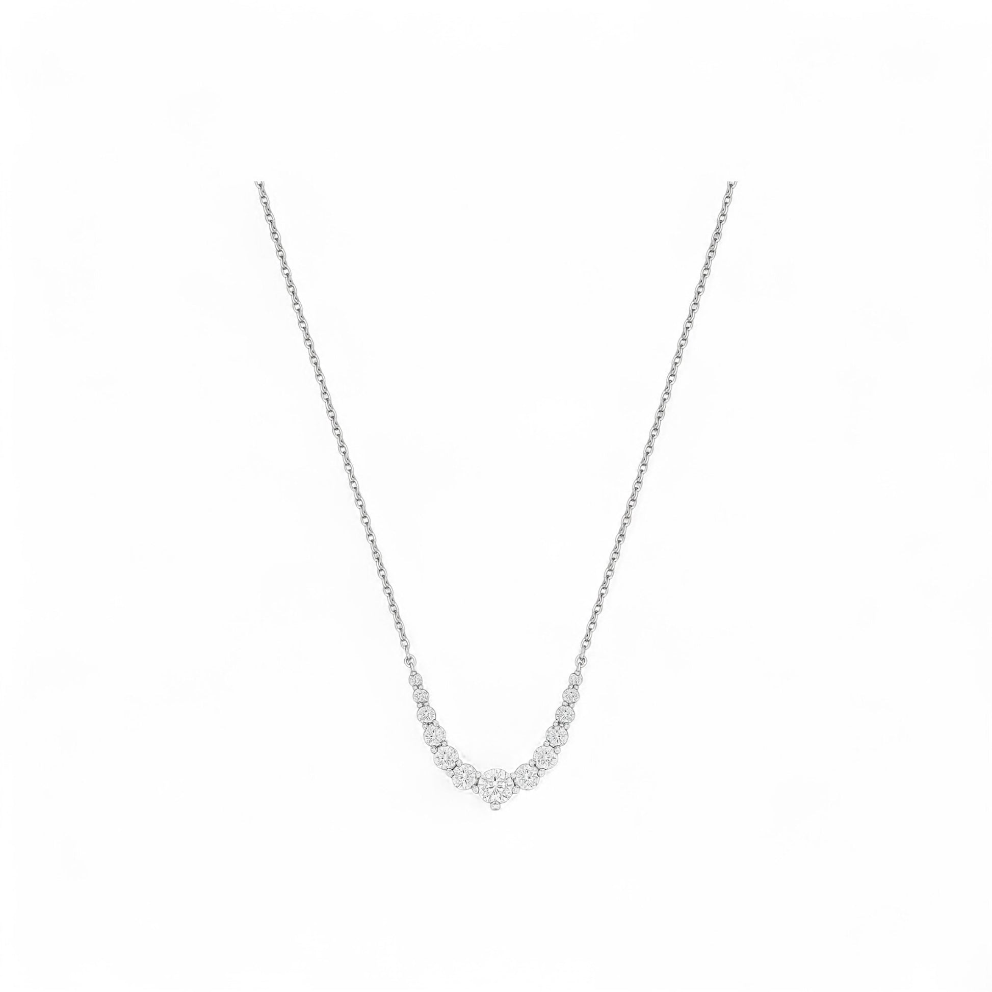 Each stone is expertly set to enhance its fire and clarity, creating a fluid line of light that wraps gracefully around the neckline.