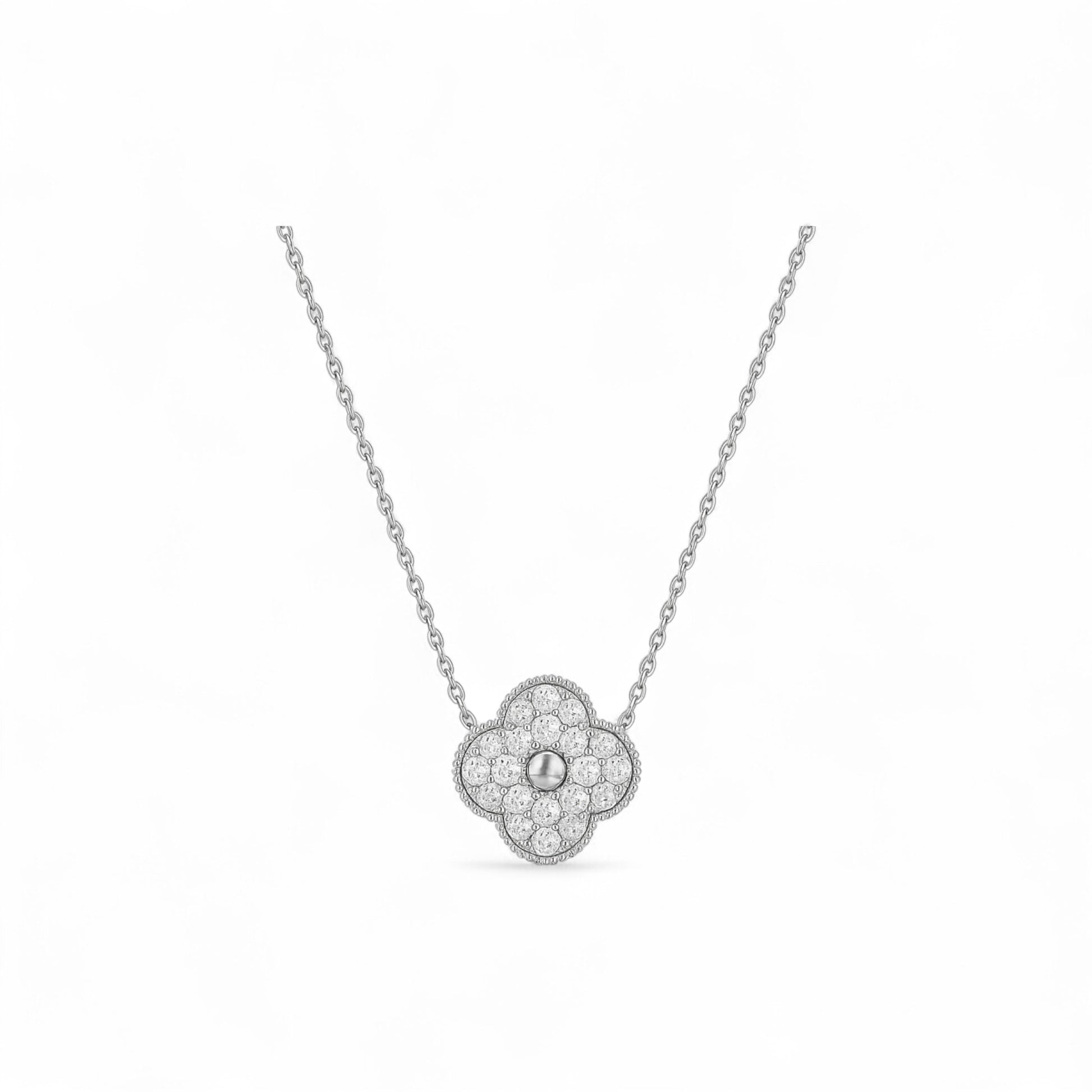 Midball Clover Natural Diamond Necklace in 18K Gold