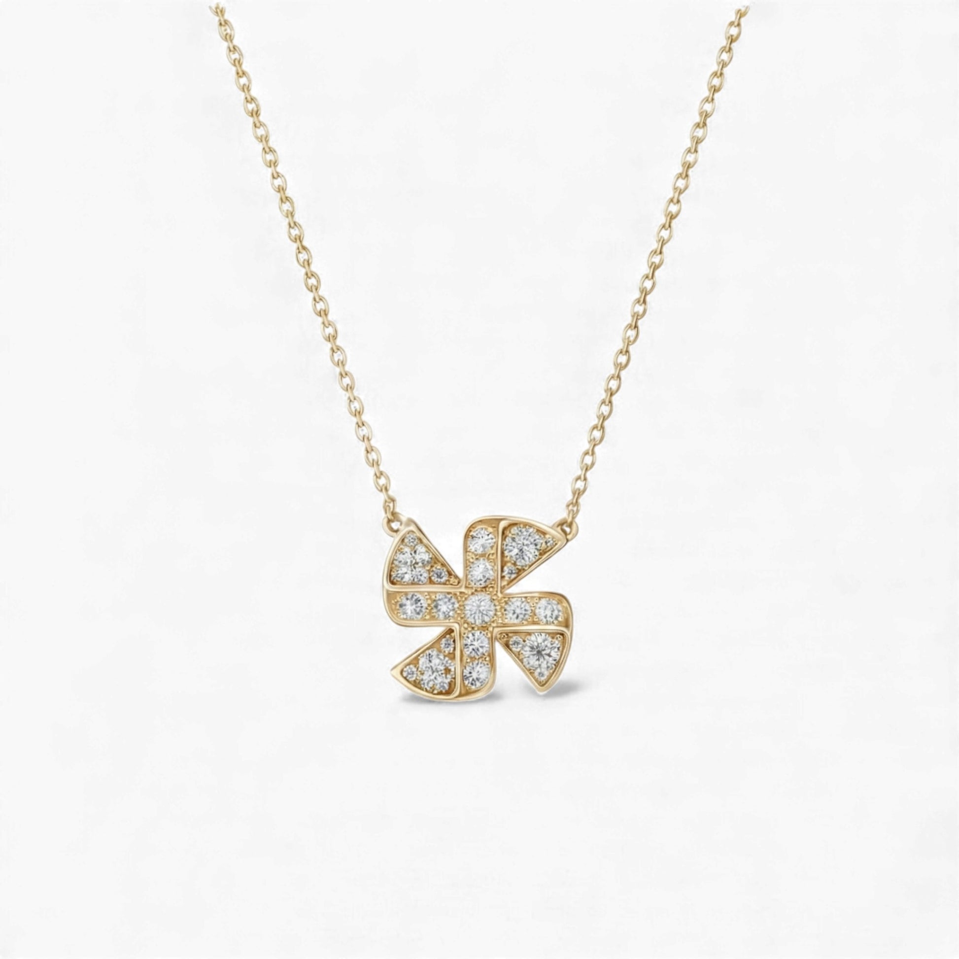 Expertly crafted in solid 18KT gold, the necklace drapes softly along the neckline, making it a perfect choice for both everyday wear and special occasions. Its organic silhouette and radiant sparkle make it a poetic addition to any jewelry collection.