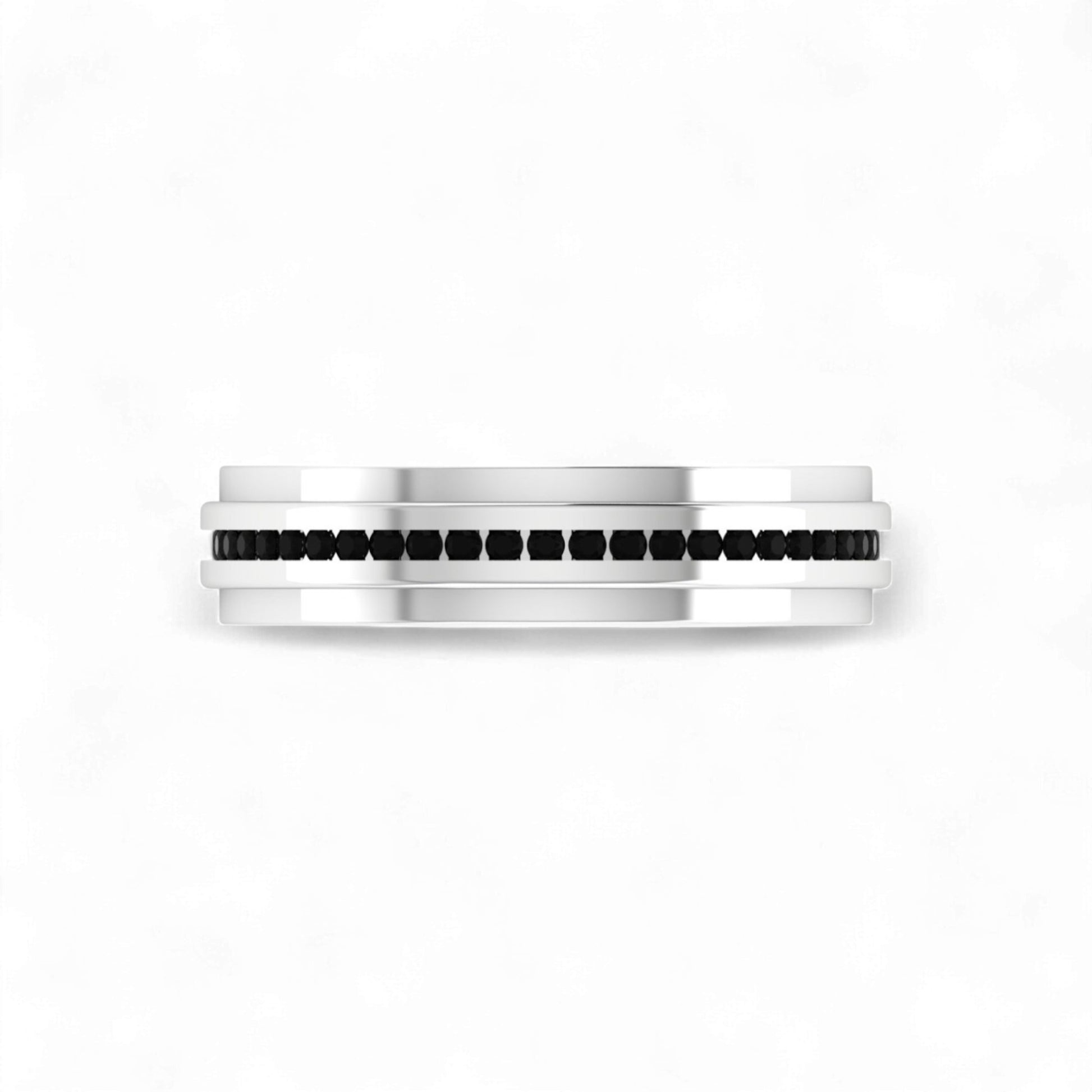 Sleek, modern, and boldly elegant, the Emma Black Moissanite Titanium Band is a refined statement of style and strength. Crafted from ultra-durable, lightweight titanium, this band features a smooth, contemporary finish and is set with a row of brilliant black Moissanite stones, known for their rich, deep sparkle and exceptional hardness.