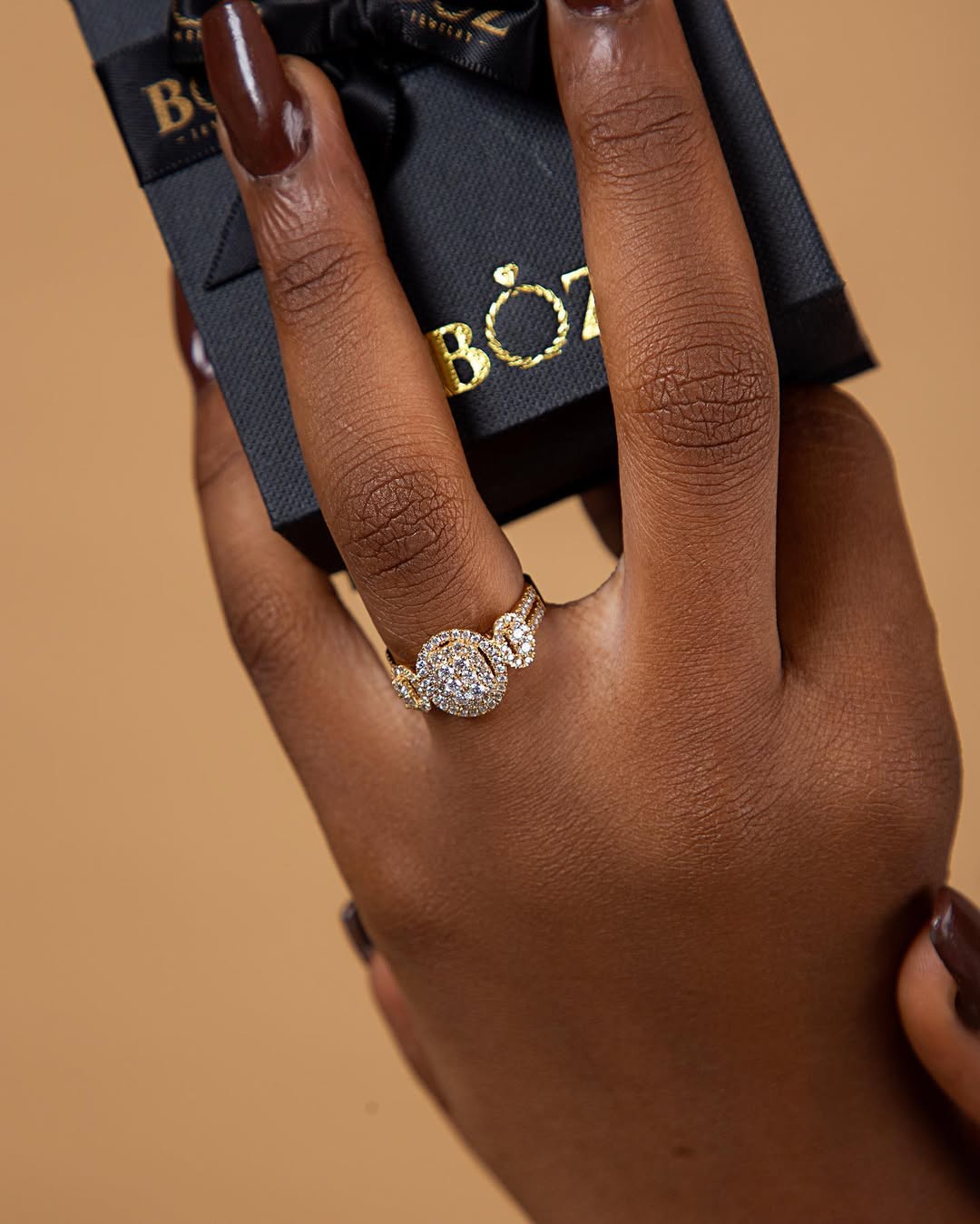 The Regina Oval Cut Natural Diamond Cluster Bride Set in 18 Karat Gold is a regal masterpiece of brilliance and devotion, showcasing an oval-shaped cluster of natural diamonds surrounded by layered halos that magnify its radiance. Handcrafted in opulent 18K gold, the engagement ring’s bold triple-stone-inspired design sparkles with pavé-set diamonds that extend along the band, perfectly paired with a matching wedding band for timeless harmony. The oval cut, symbolizing elegance and continuity, reflects a love that grows stronger with time, making this bridal set the ultimate choice for the bride who desires grandeur, luxury, and a forever bond.