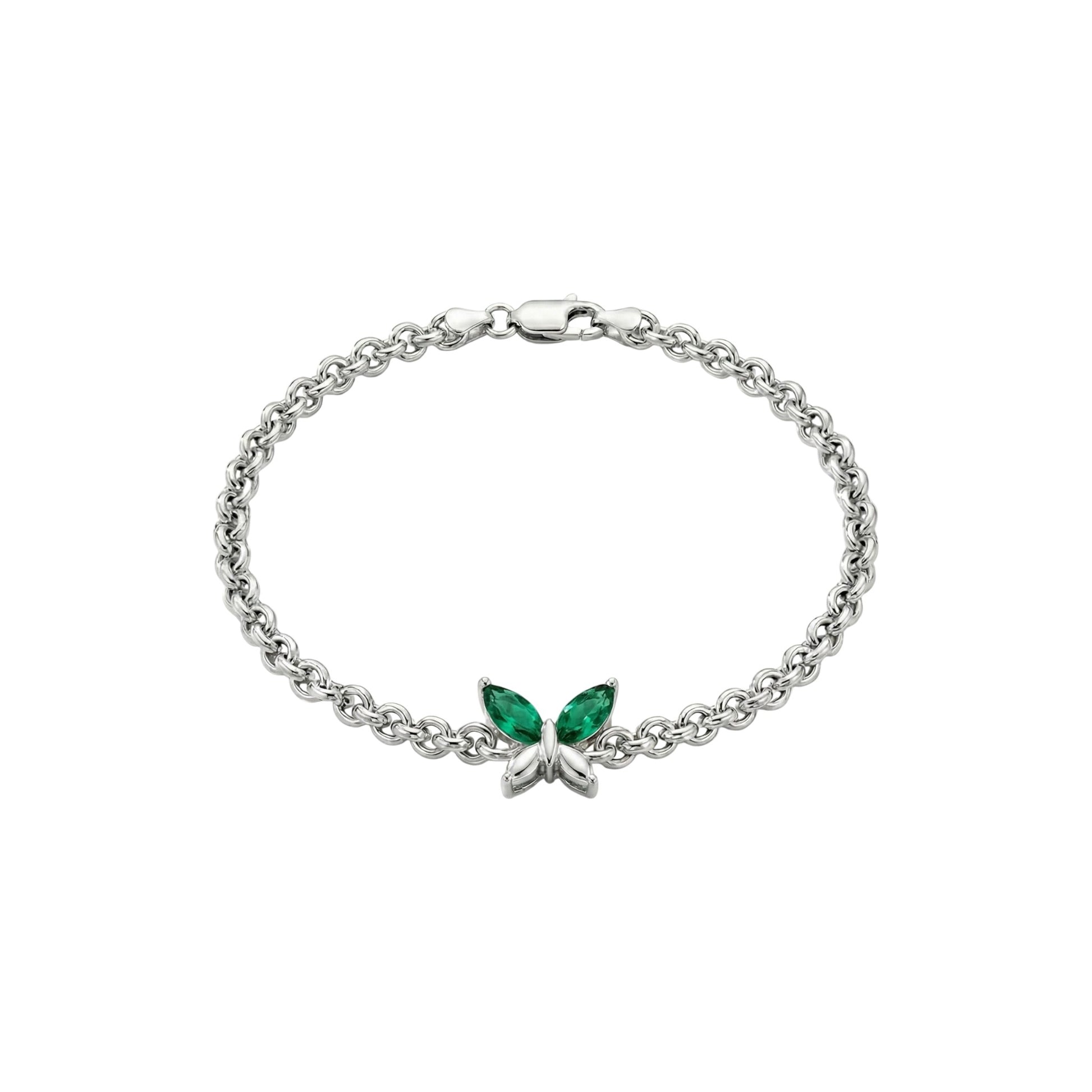 Emerald And Pink Butterfly Heart Bracelet in 925 Sterling Silver