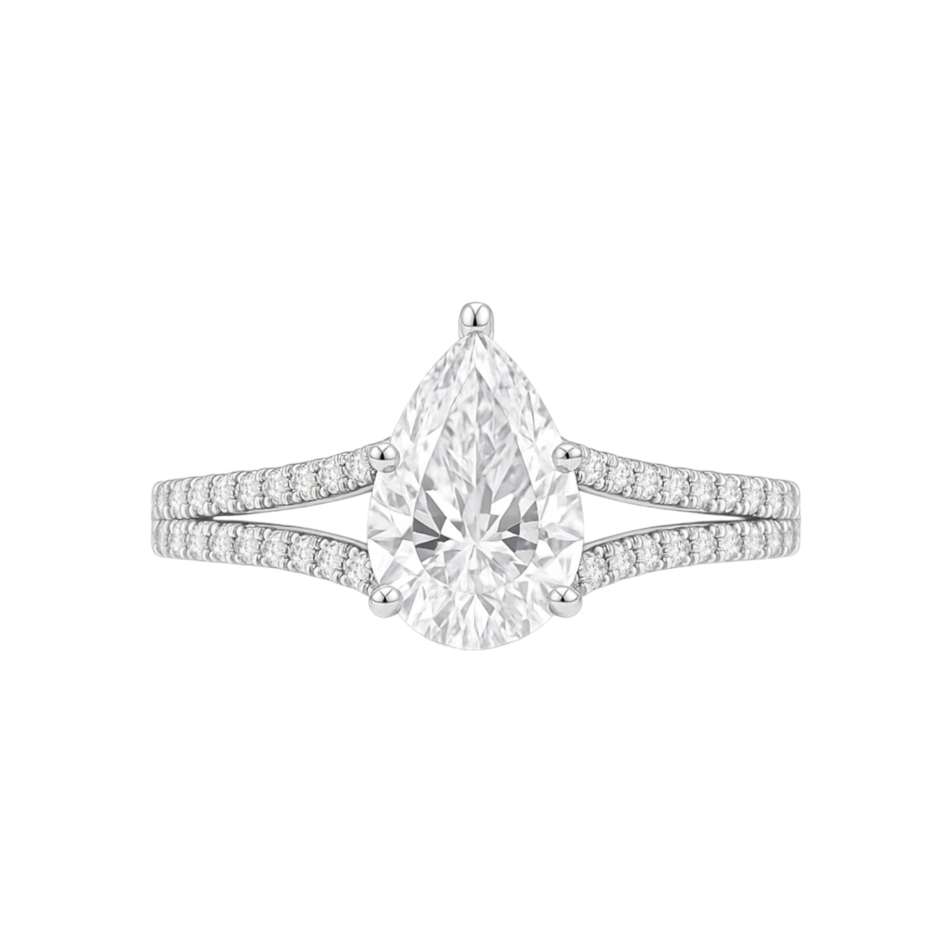 Home Collections 925 Sterling Silver Split Shank Pear Cut Moissanite Engagement Ring in 925 Sterling Silver