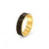 Bold, modern, and undeniably captivating, the 360 Black Diamond Band is a powerful symbol of strength and refined style. Crafted from luxurious 18 Karat Gold,  it showcases a continuous circle of hand-set black natural diamonds, creating a seamless all-around shimmer that commands attention.