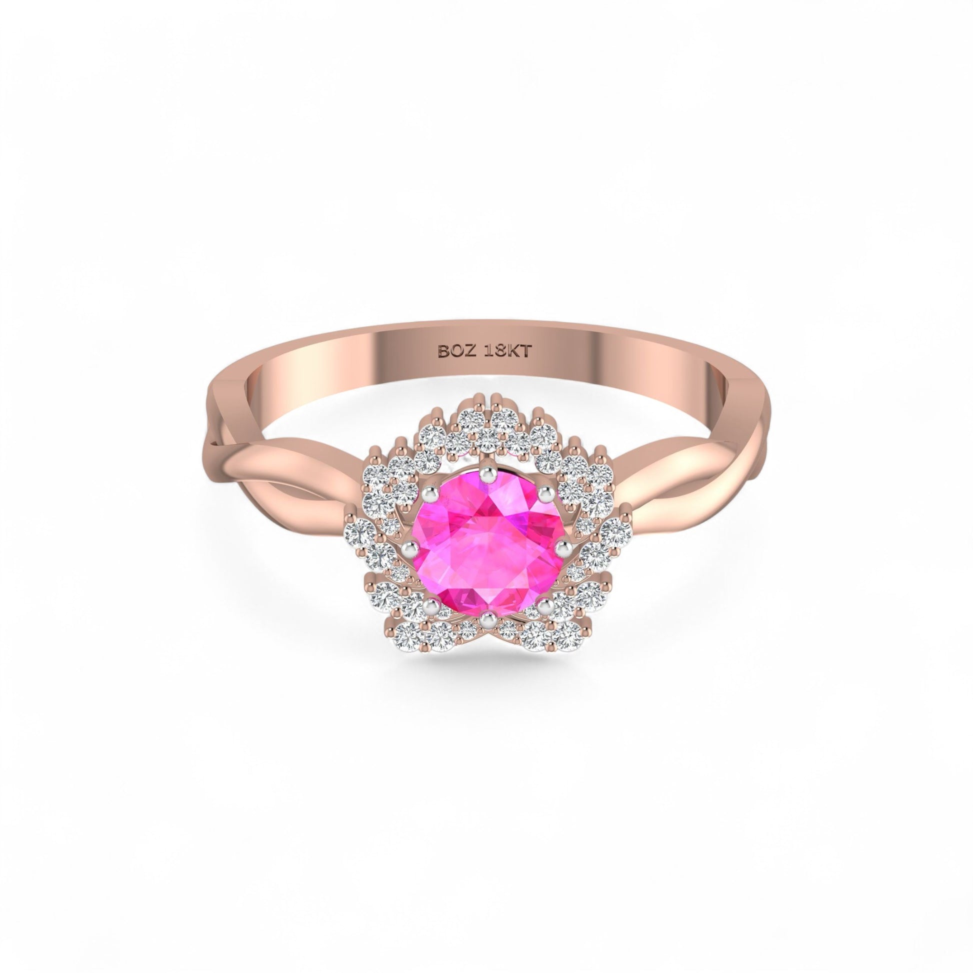 Vibrant, romantic, and timeless, the BOZ Forever Natural Diamond Gemstone Engagement Ring is a celebration of love’s most radiant expression. Handcrafted in luxurious 18 Karat gold, this design features a brilliant round-cut gemstones at its center, glowing with passion and individuality. A halo of natural diamonds surrounds the centerpiece, amplifying its brilliance, while the gracefully twisted band adds elegance and meaning, symbolizing two souls woven together as one.