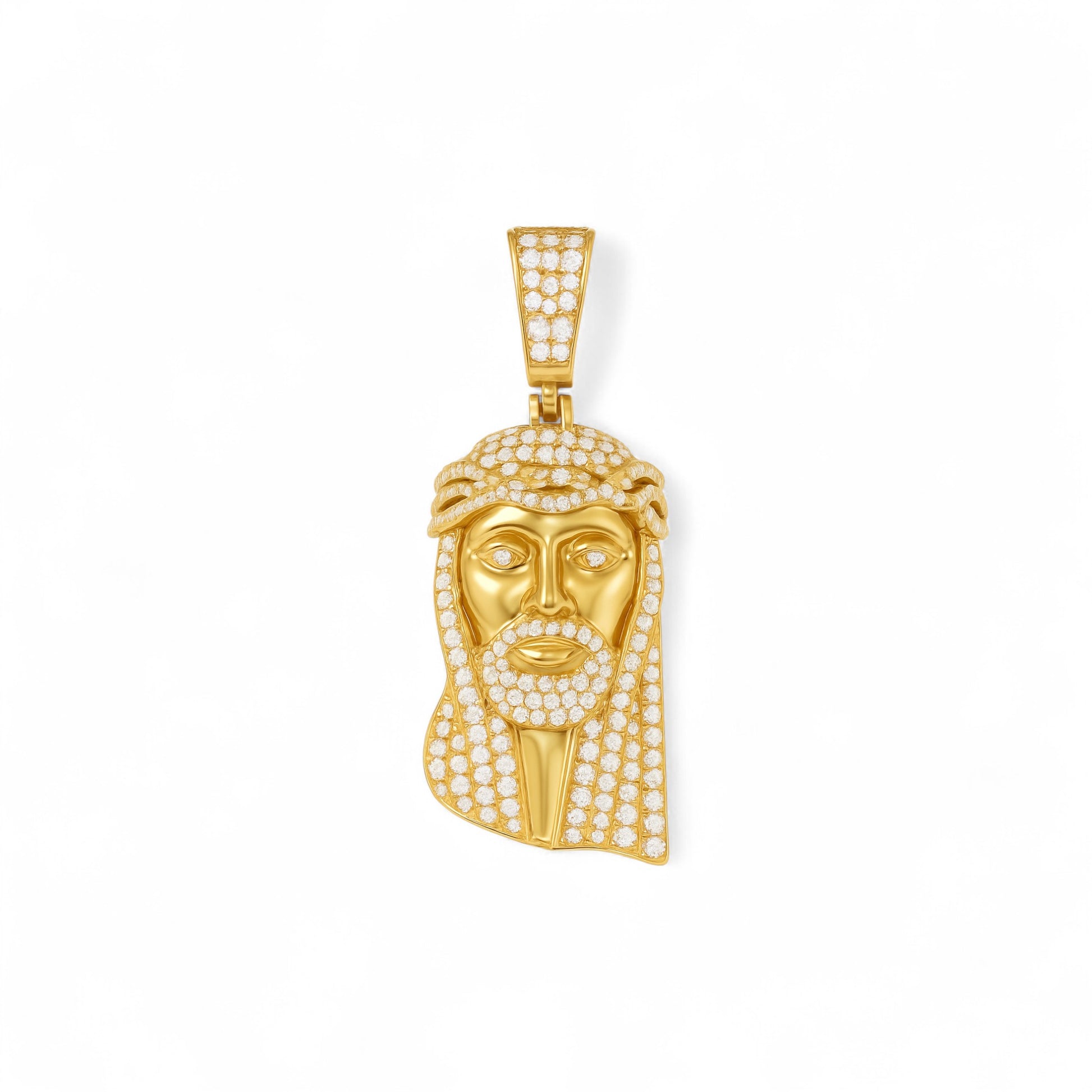 The Jesus Natural Diamond Pendant in 18K Gold is a bold expression of faith, devotion, and divine grace. Expertly crafted in pure 18K gold, this intricately detailed pendant features the revered image of Jesus Christ, beautifully accented with brilliant natural diamonds that illuminate the sacred form with a heavenly glow.