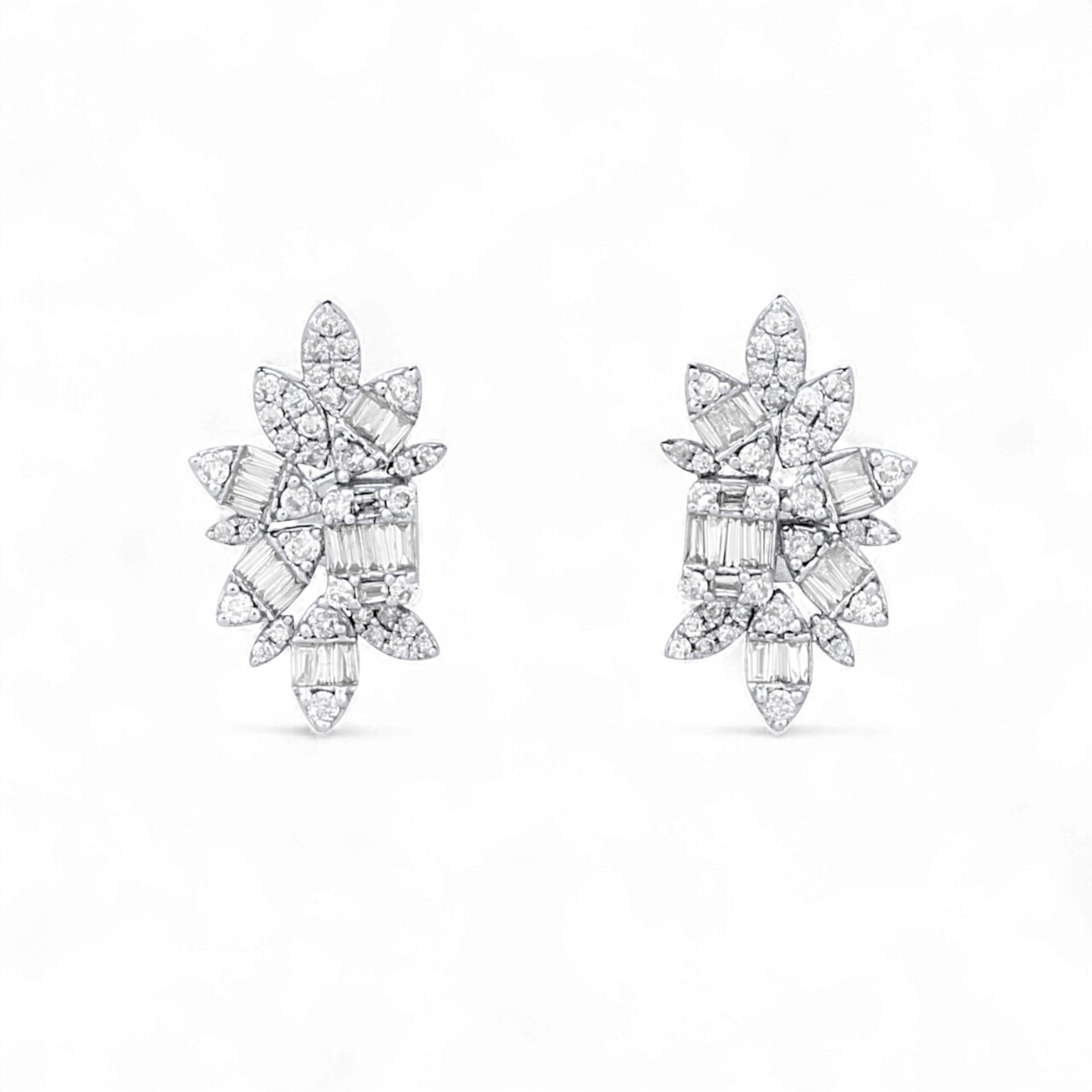 The BOZ Lyra Diamond Studs draw their brilliance from the stars, crafted in radiant 18K gold and adorned with a breathtaking mosaic of marquise, baguette, and round-cut natural diamonds. Designed in a layered cluster that evokes celestial movement, each stud shimmers like a starburst, telling a story of light, love, and infinite grace.