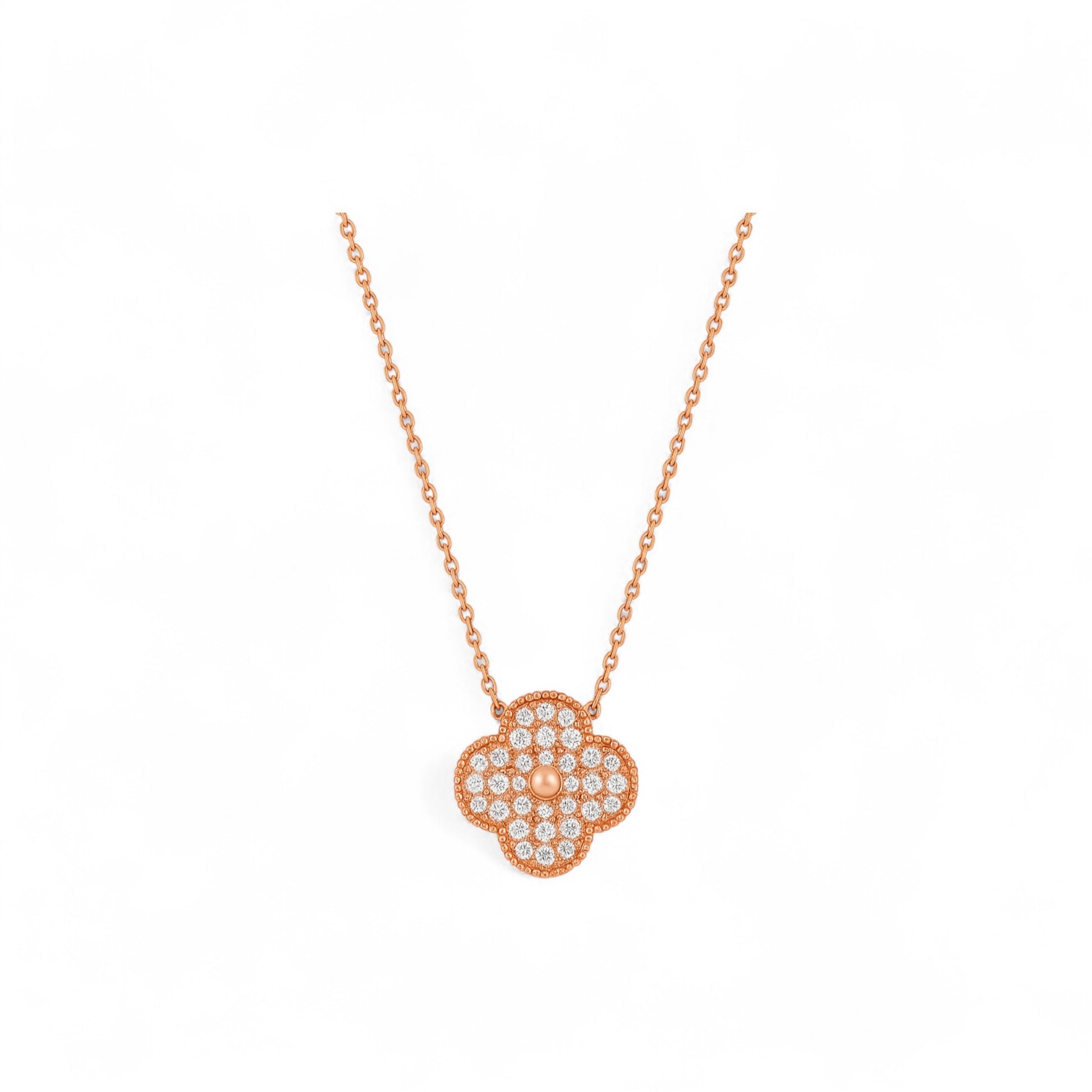 Midball Clover Natural Diamond Necklace in 18K Gold
